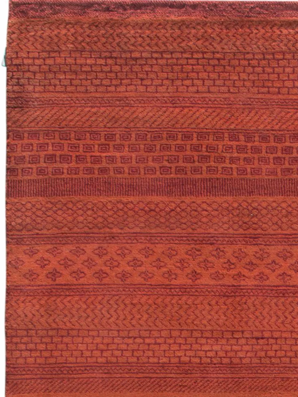 ist eine ungewöhnliche moderne Variation des traditionellen persichen Gabbehs. Er ist kürzer im Flor und feiner geknüpft. Es gibt zahllose Neukreationen in individuellen und einzigartigen Farben und Mustern.| Gesamthöhe: | ca. 10 mm |