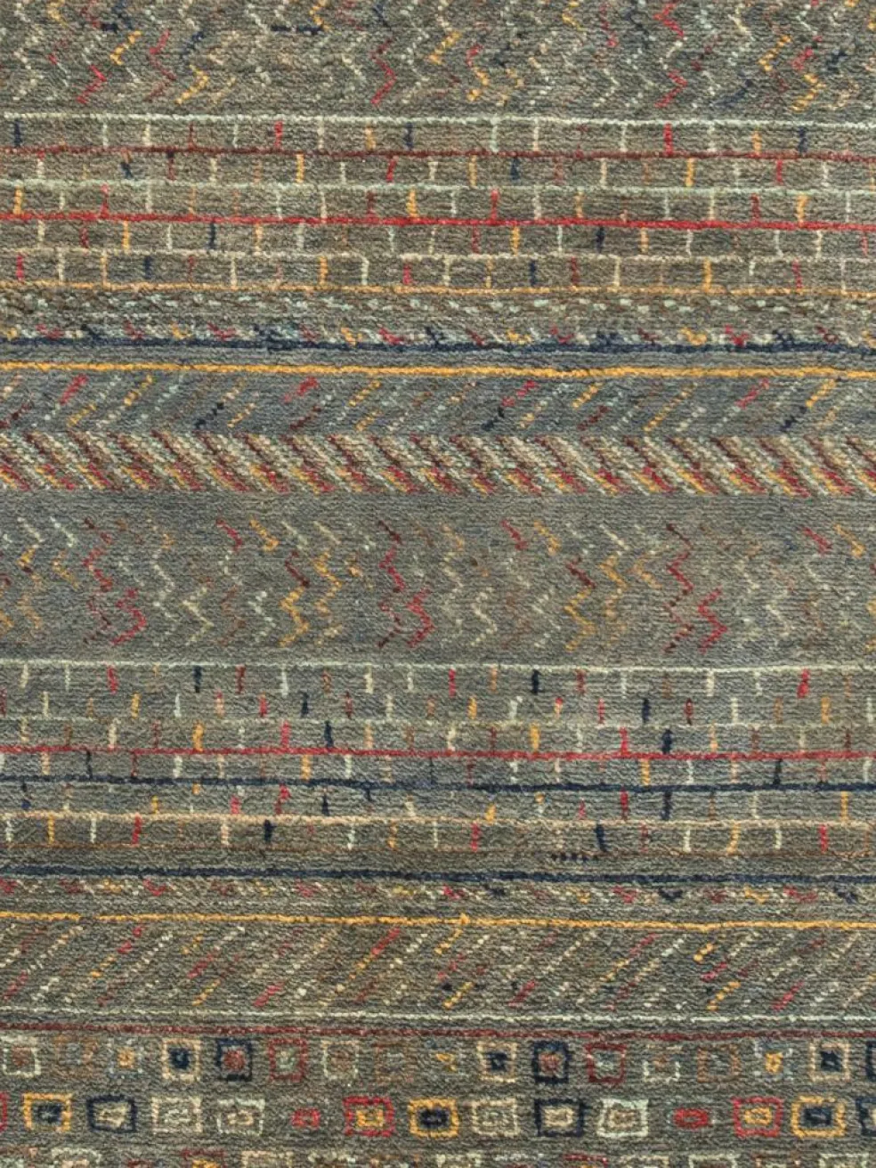 ist eine ungewöhnliche moderne Variation des traditionellen persichen Gabbehs. Er ist kürzer im Flor und feiner geknüpft. Es gibt zahllose Neukreationen in individuellen und einzigartigen Farben und Mustern.| Gesamthöhe: | ca. 7 mm |