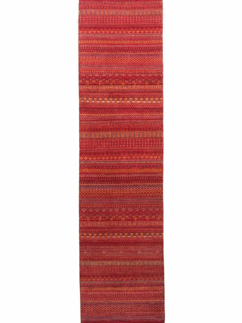 ist eine ungewöhnliche moderne Variation des traditionellen persichen Gabbehs. Er ist kürzer im Flor und feiner geknüpft. Es gibt zahllose Neukreationen in individuellen und einzigartigen Farben und Mustern.| Gesamthöhe: | ca. 10 mm |