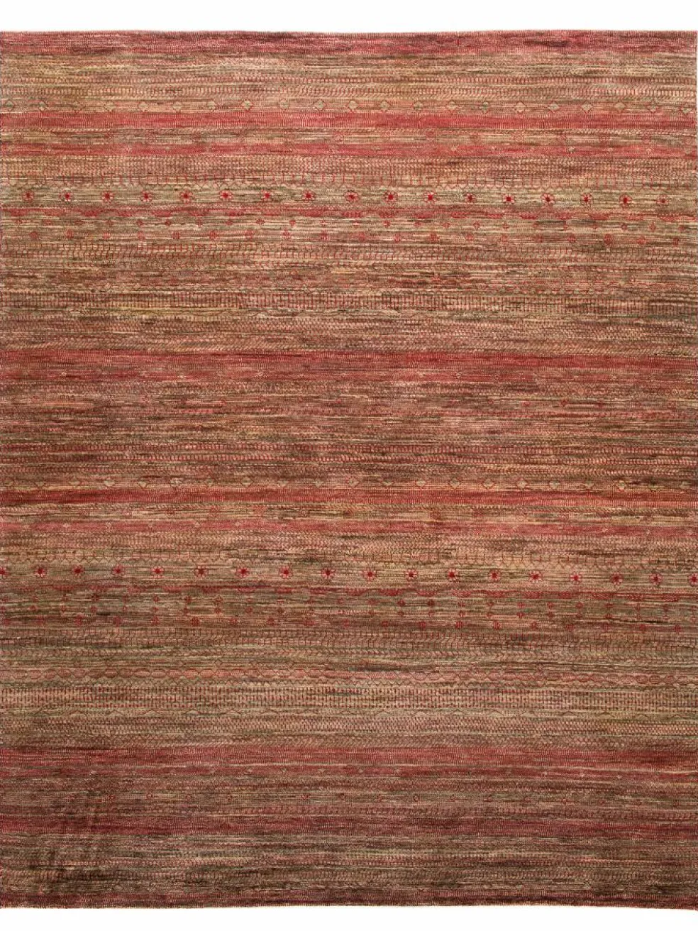ist eine ungewöhnliche moderne Variation des traditionellen persichen Gabbehs. Er ist kürzer im Flor und feiner geknüpft. Es gibt zahllose Neukreationen in individuellen und einzigartigen Farben und Mustern. – Fein geknüpft inDouble-Knot