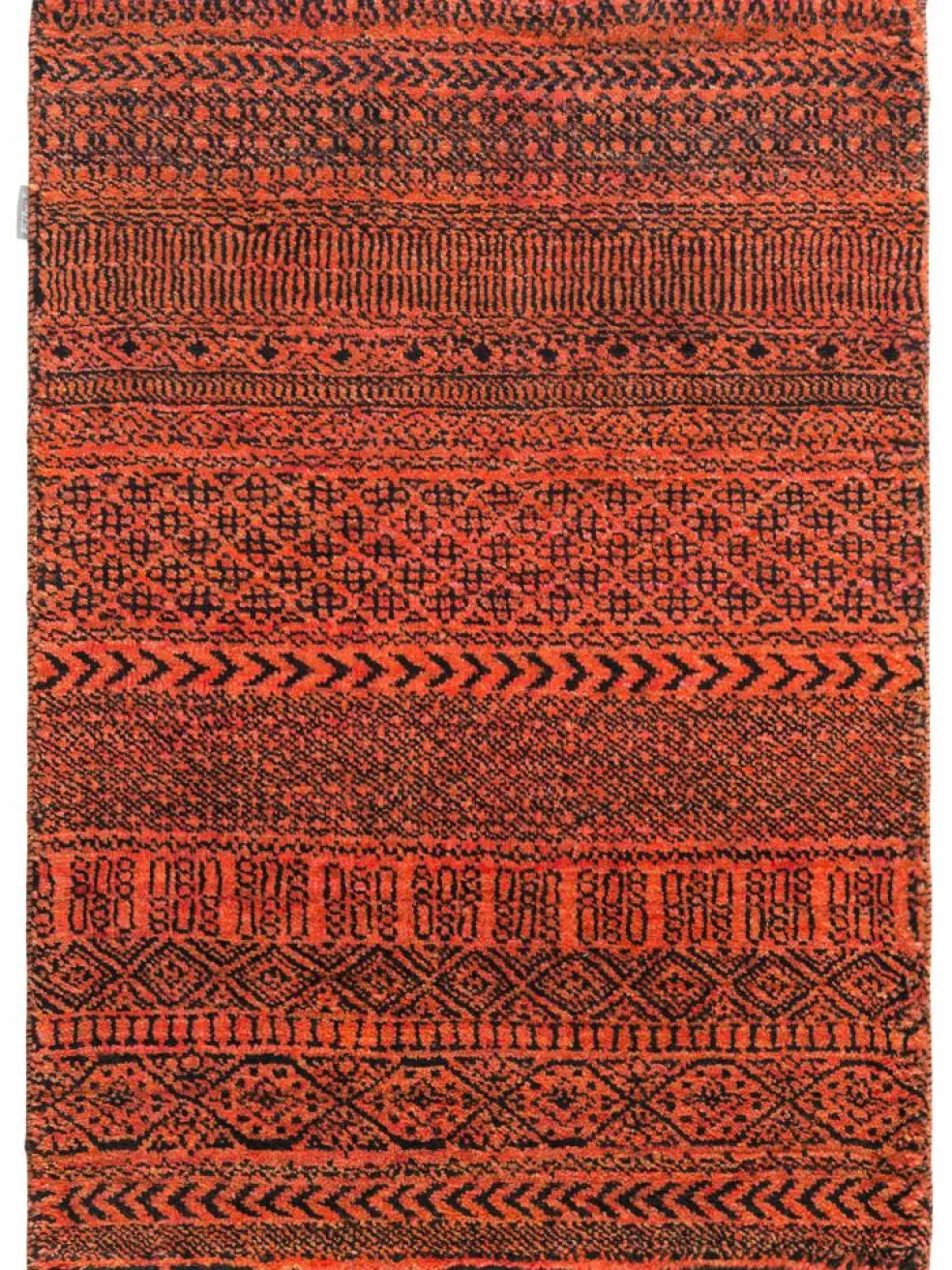 ist eine ungewöhnliche moderne Variation des traditionellen persichen Gabbehs. Er ist kürzer im Flor und feiner geknüpft. Es gibt zahllose Neukreationen in individuellen und einzigartigen Farben und Mustern.| Gesamthöhe: | ca. 10 mm |