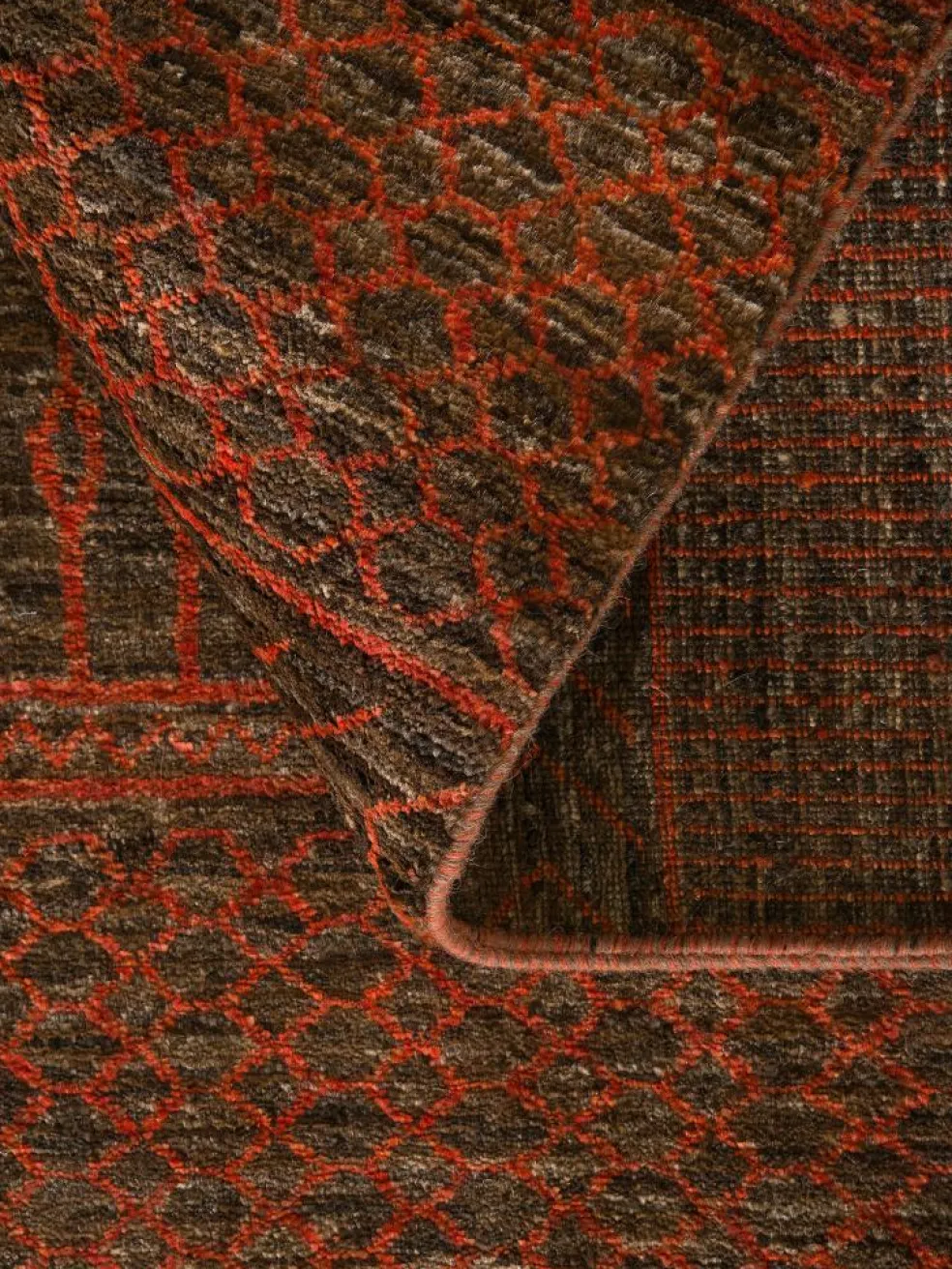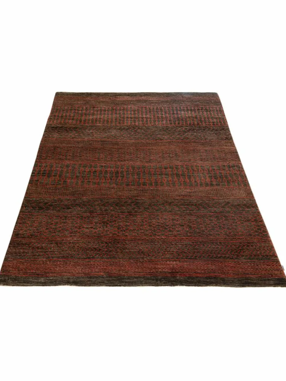 ist eine ungewöhnliche moderne Variation des traditionellen persichen Gabbehs. Er ist kürzer im Flor und feiner geknüpft. Es gibt zahllose Neukreationen in individuellen und einzigartigen Farben und Mustern.| Gesamthöhe: | ca. 10 mm |