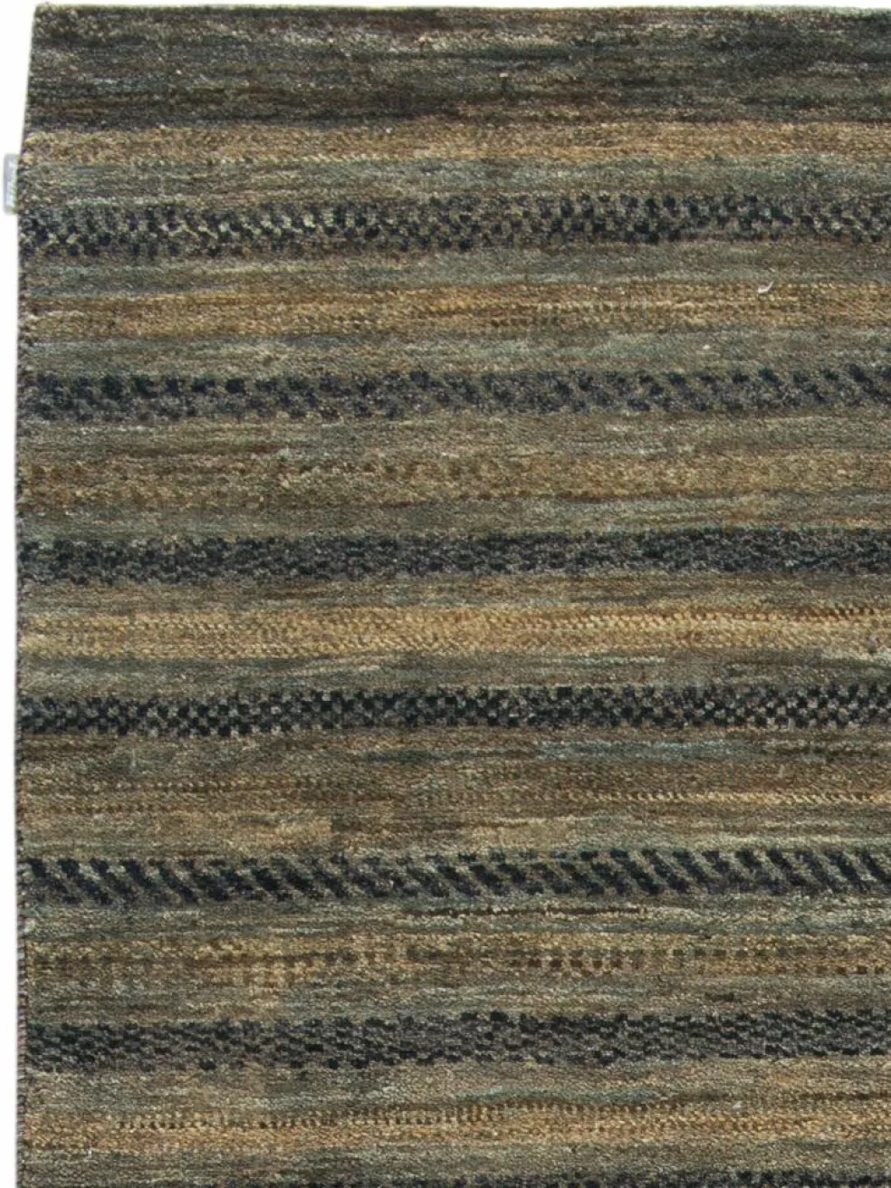 ist eine ungewöhnliche moderne Variation des traditionellen persichen Gabbehs. Er ist kürzer im Flor und feiner geknüpft. Es gibt zahllose Neukreationen in individuellen und einzigartigen Farben und Mustern.| Gesamthöhe: | ca. 10 mm |