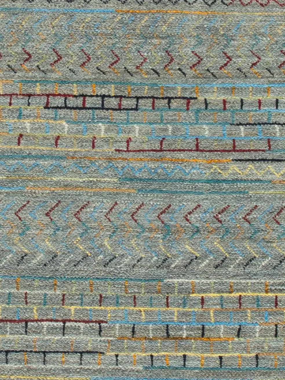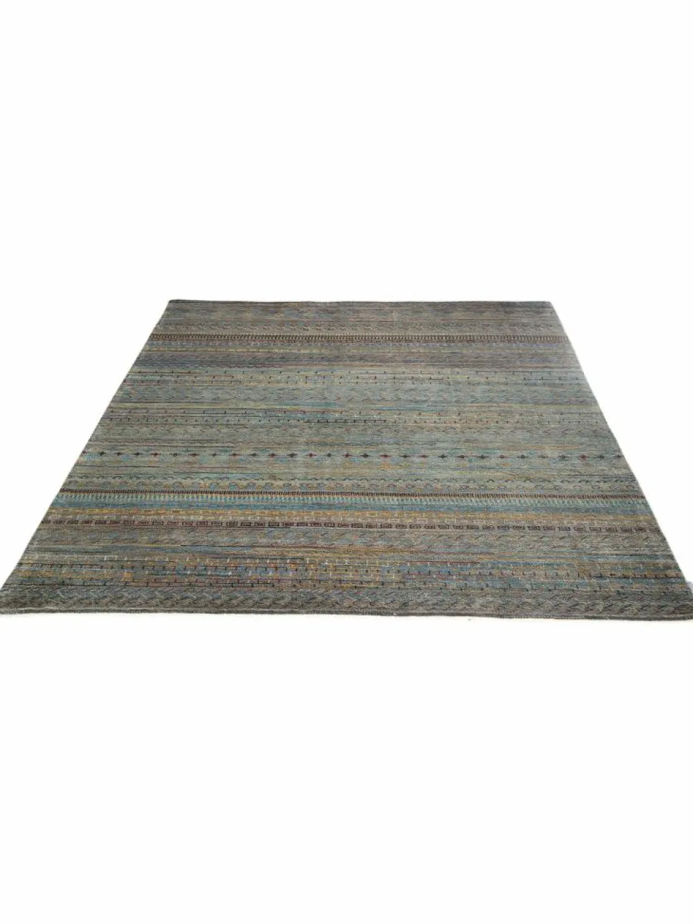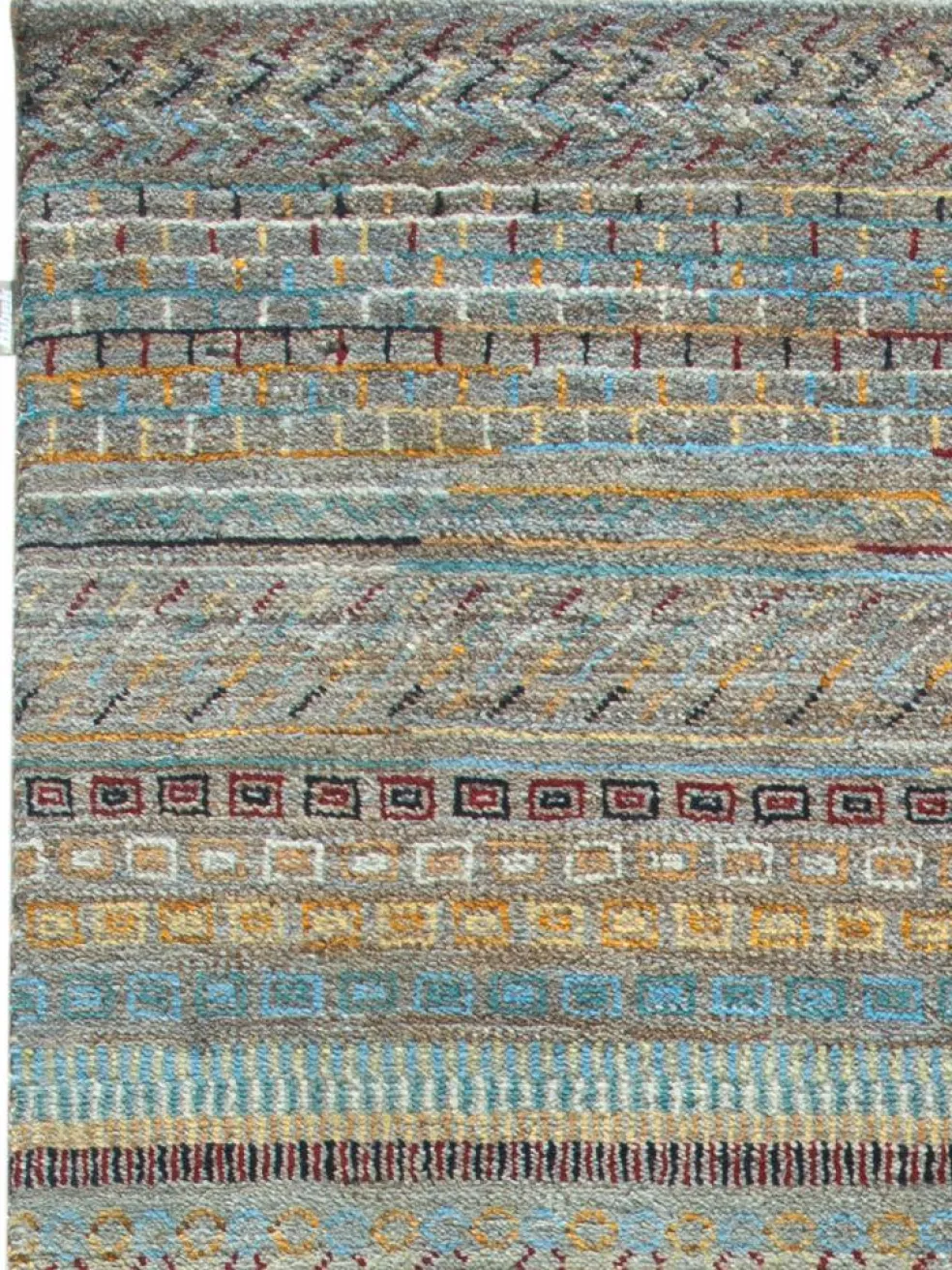 ist eine ungewöhnliche moderne Variation des traditionellen persichen Gabbehs. Er ist kürzer im Flor und feiner geknüpft. Es gibt zahllose Neukreationen in individuellen und einzigartigen Farben und Mustern.| Gesamthöhe: | ca. 10 mm |