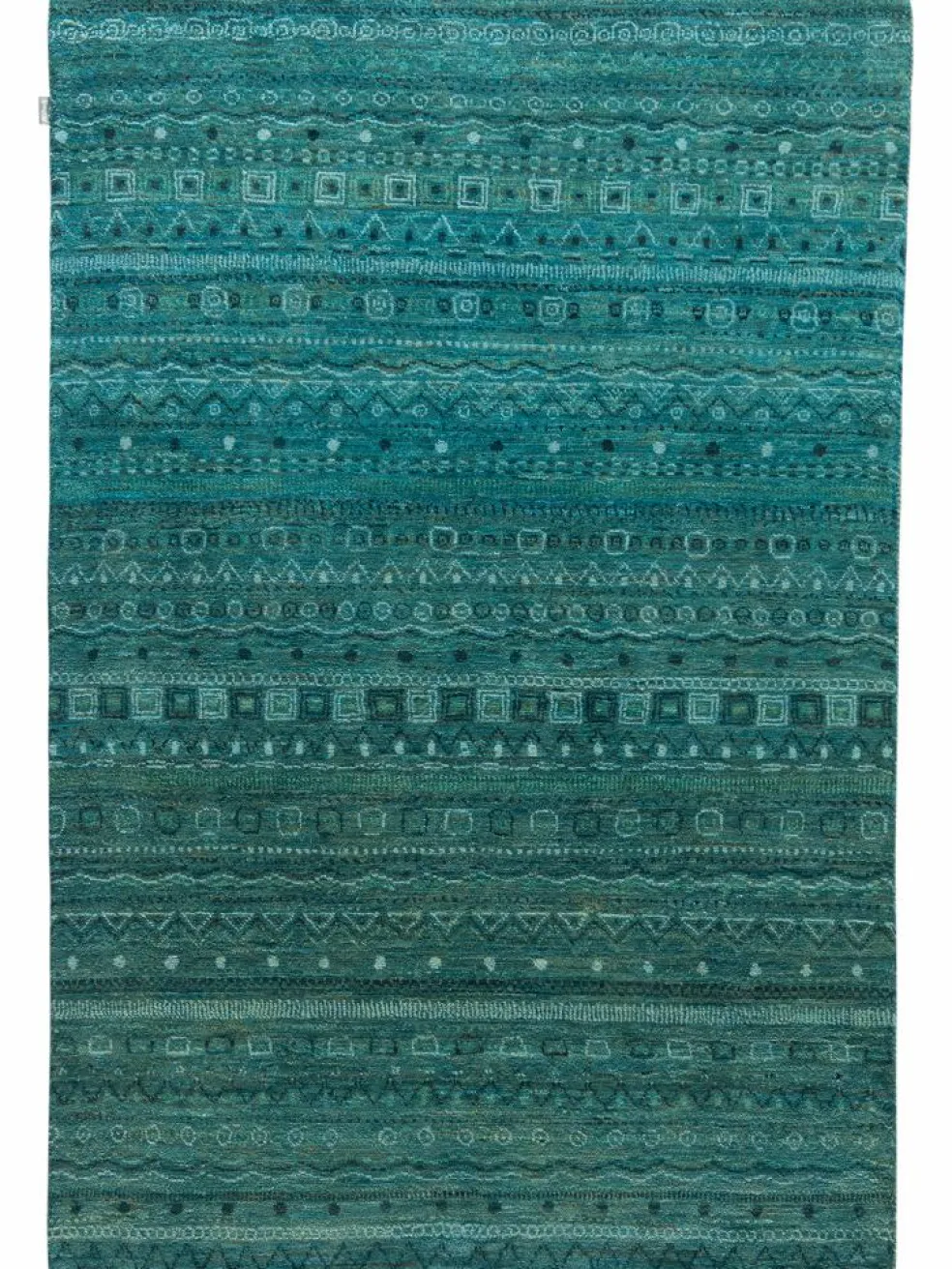 ist eine ungewöhnliche moderne Variation des traditionellen persichen Gabbehs. Er ist kürzer im Flor und feiner geknüpft. Es gibt zahllose Neukreationen in individuellen und einzigartigen Farben und Mustern.| Gesamthöhe: | ca. 10 mm |