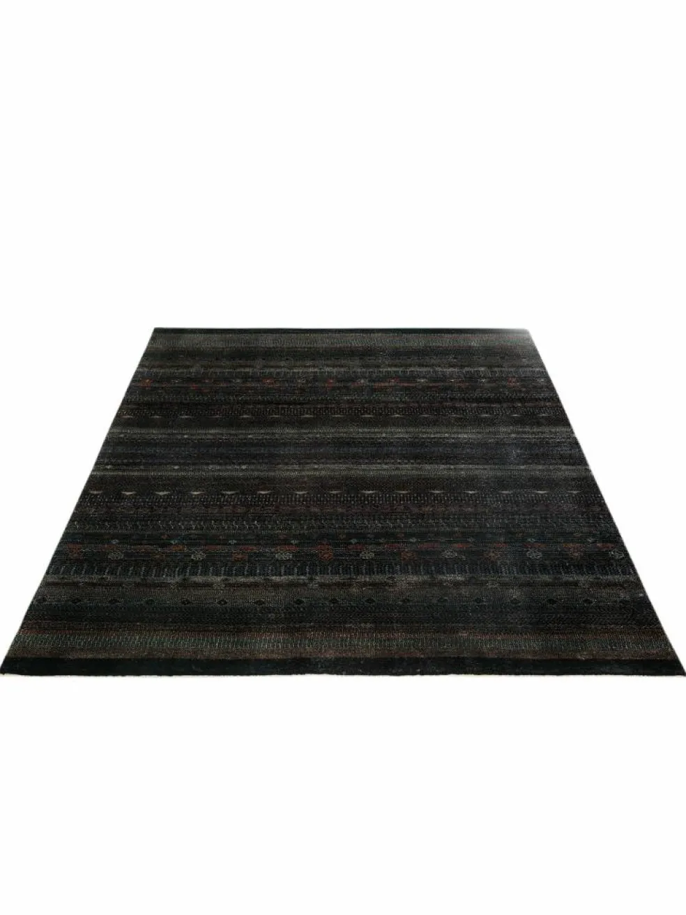 ist eine ungewöhnliche moderne Variation des traditionellen persichen Gabbehs. Er ist kürzer im Flor und feiner geknüpft. Es gibt zahllose Neukreationen in individuellen und einzigartigen Farben und Mustern. – Fein geknüpft inDouble-Knot
