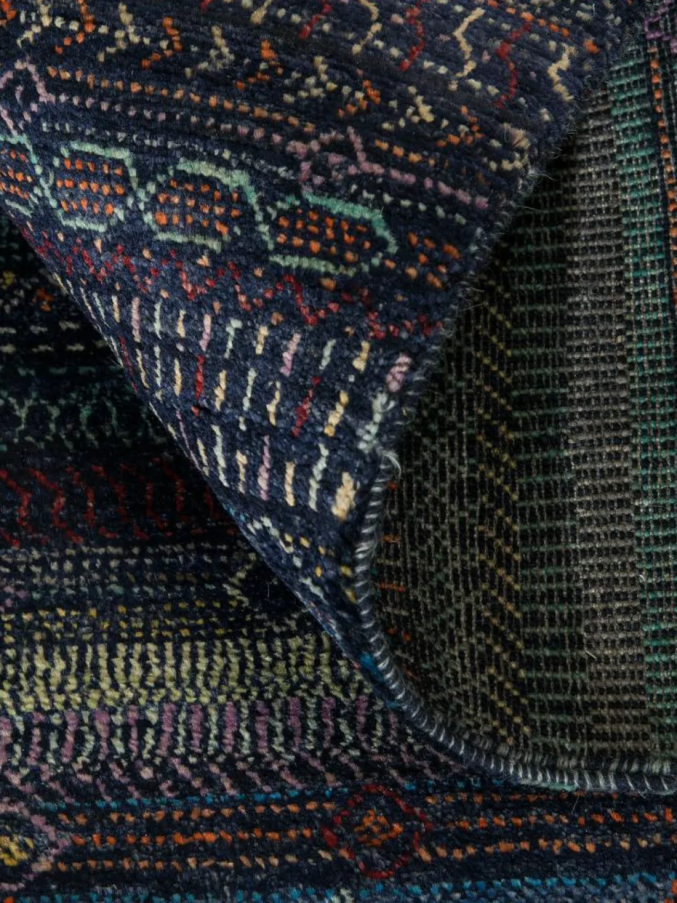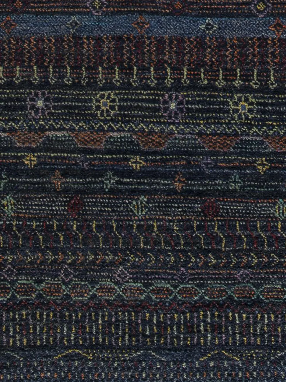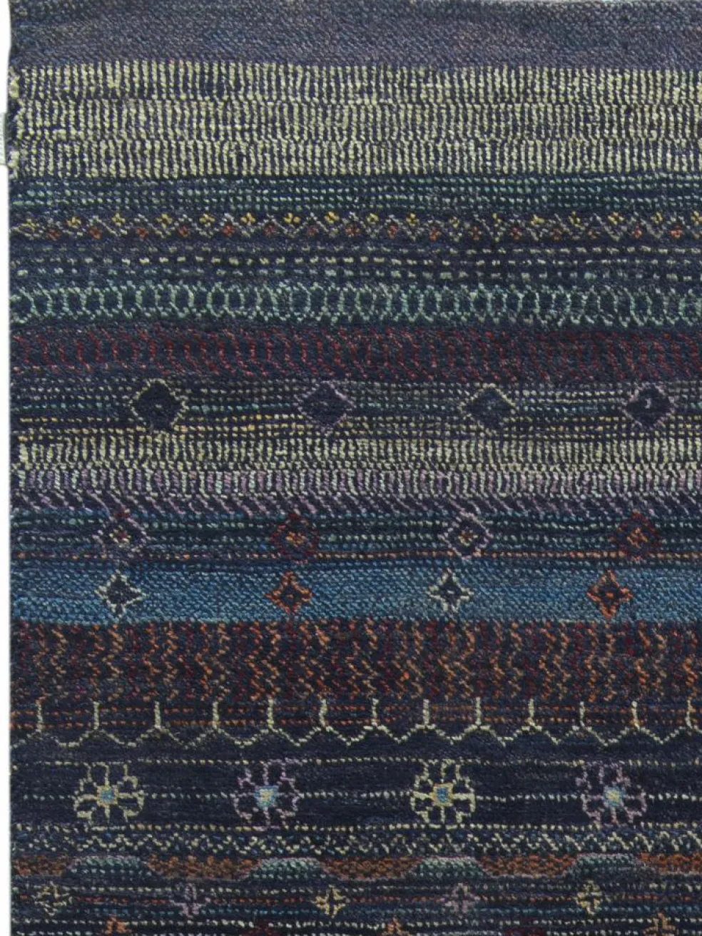 ist eine ungewöhnliche moderne Variation des traditionellen persichen Gabbehs. Er ist kürzer im Flor und feiner geknüpft. Es gibt zahllose Neukreationen in individuellen und einzigartigen Farben und Mustern.| Gesamthöhe: | ca. 9 mm |