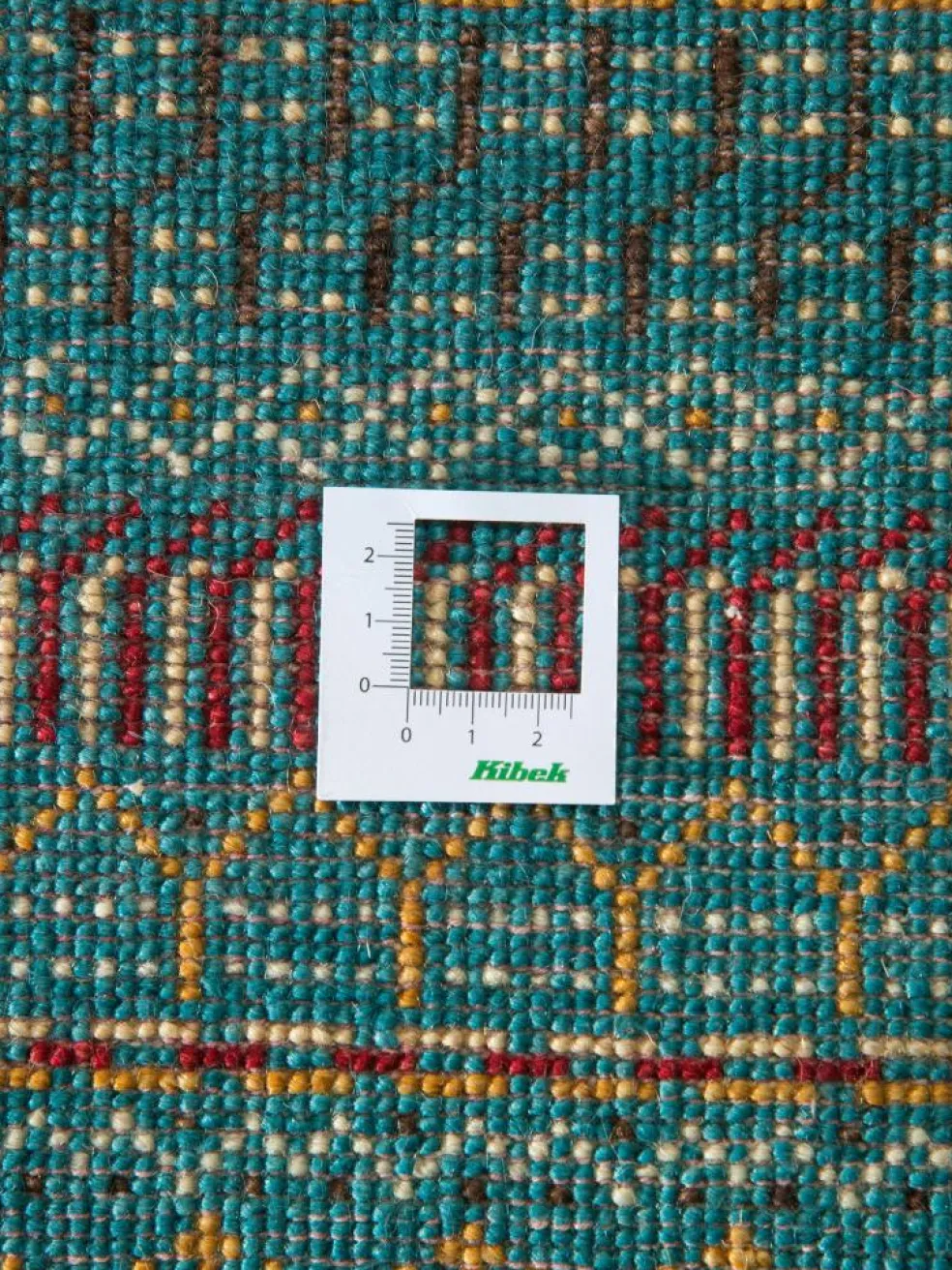 ist eine ungewöhnliche moderne Variation des traditionellen persichen Gabbehs. Er ist kürzer im Flor und feiner geknüpft. Es gibt zahllose Neukreationen in individuellen und einzigartigen Farben und Mustern.| Gesamthöhe: | ca. 10 mm |