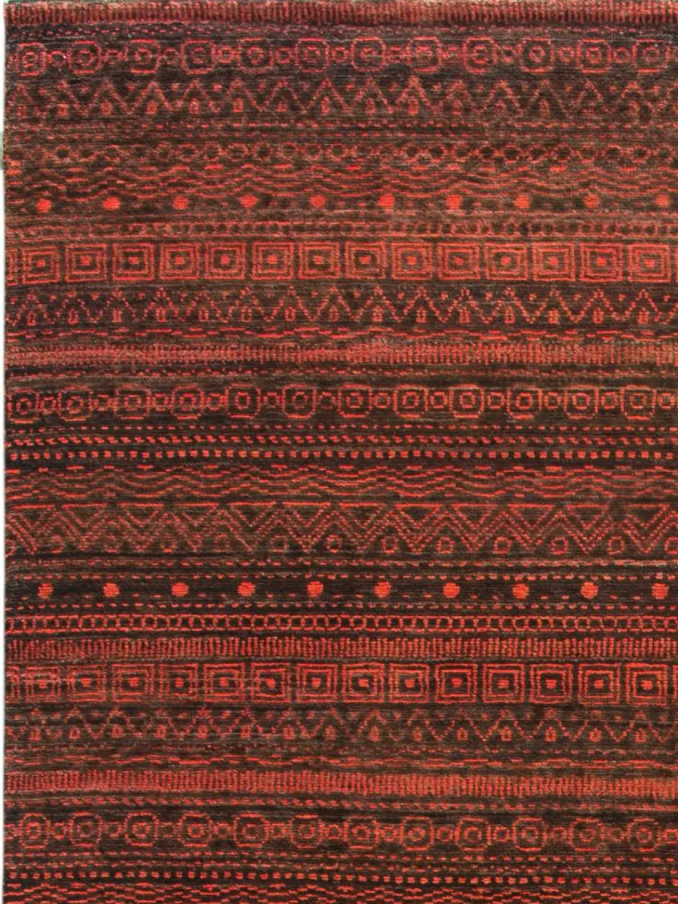 ist eine ungewöhnliche moderne Variation des traditionellen persichen Gabbehs. Er ist kürzer im Flor und feiner geknüpft. Es gibt zahllose Neukreationen in individuellen und einzigartigen Farben und Mustern.| Gesamthöhe: | ca. 9 mm |