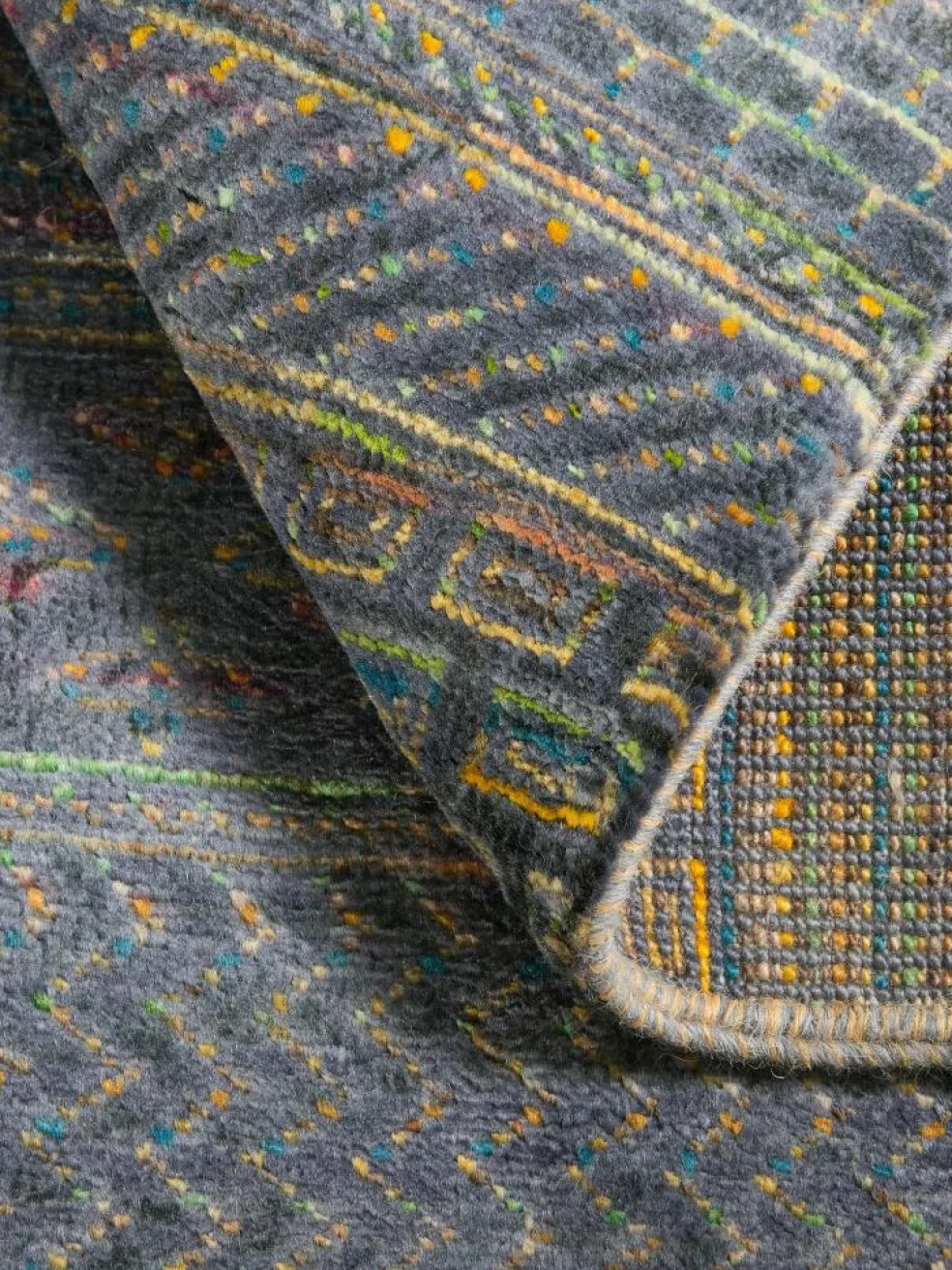 ist eine ungewöhnliche moderne Variation des traditionellen persichen Gabbehs. Er ist kürzer im Flor und feiner geknüpft. Es gibt zahllose Neukreationen in individuellen und einzigartigen Farben und Mustern. – Fein geknüpft inDouble-Knot