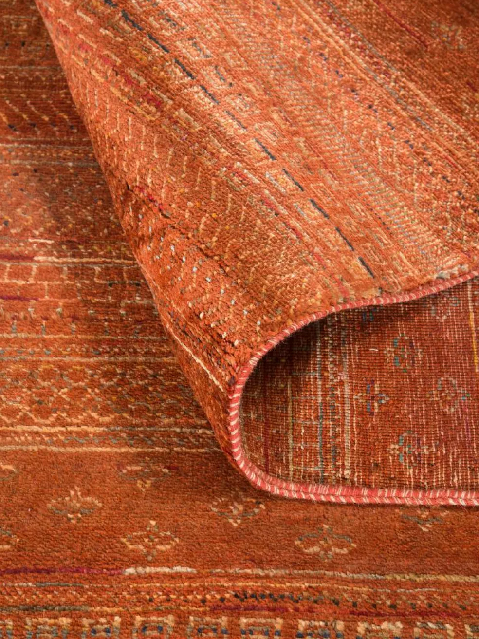 ist eine ungewöhnliche moderne Variation des traditionellen persichen Gabbehs. Er ist kürzer im Flor und feiner geknüpft. Es gibt zahllose Neukreationen in individuellen und einzigartigen Farben und Mustern.| Gesamthöhe: | ca. 6 mm |