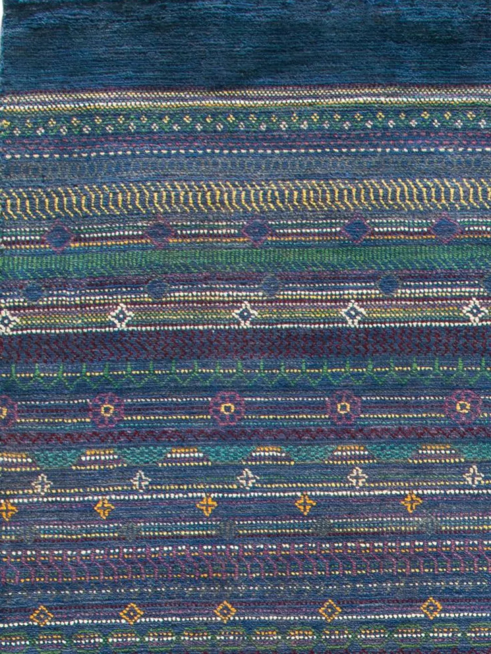 ist eine ungewöhnliche moderne Variation des traditionellen persichen Gabbehs. Er ist kürzer im Flor und feiner geknüpft. Es gibt zahllose Neukreationen in individuellen und einzigartigen Farben und Mustern.| Gesamthöhe: | ca. 10 mm |
