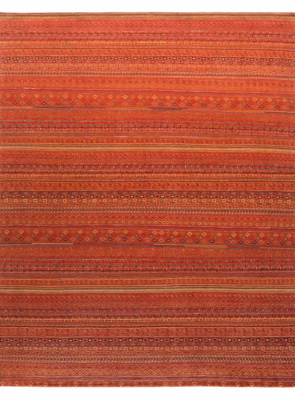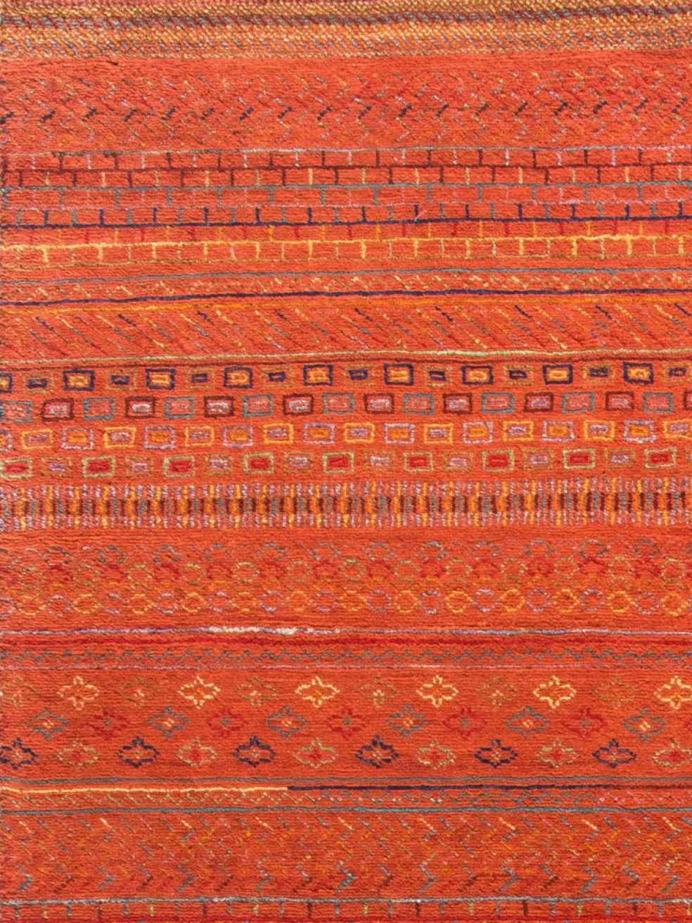 ist eine ungewöhnliche moderne Variation des traditionellen persichen Gabbehs. Er ist kürzer im Flor und feiner geknüpft. Es gibt zahllose Neukreationen in individuellen und einzigartigen Farben und Mustern.| Gesamthöhe: | ca. 10 mm |