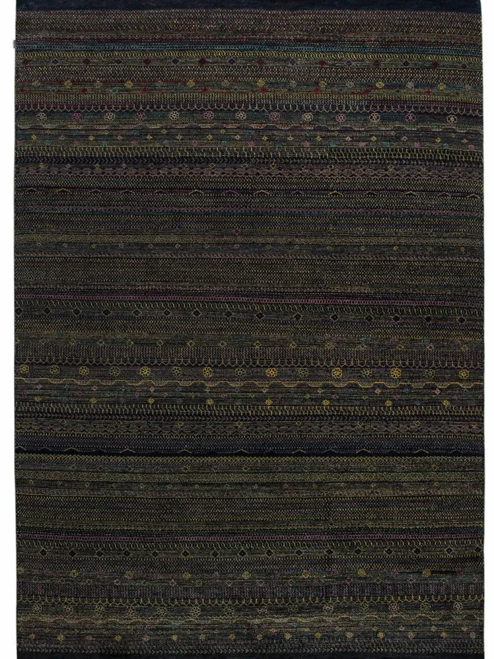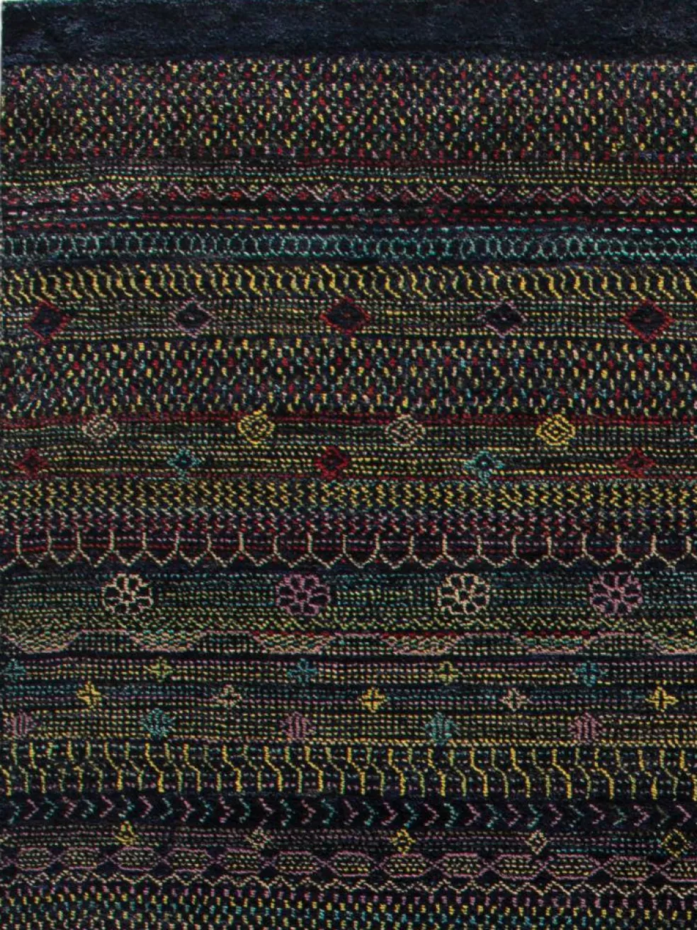 ist eine ungewöhnliche moderne Variation des traditionellen persichen Gabbehs. Er ist kürzer im Flor und feiner geknüpft. Es gibt zahllose Neukreationen in individuellen und einzigartigen Farben und Mustern.| Gesamthöhe: | ca. 10 mm |