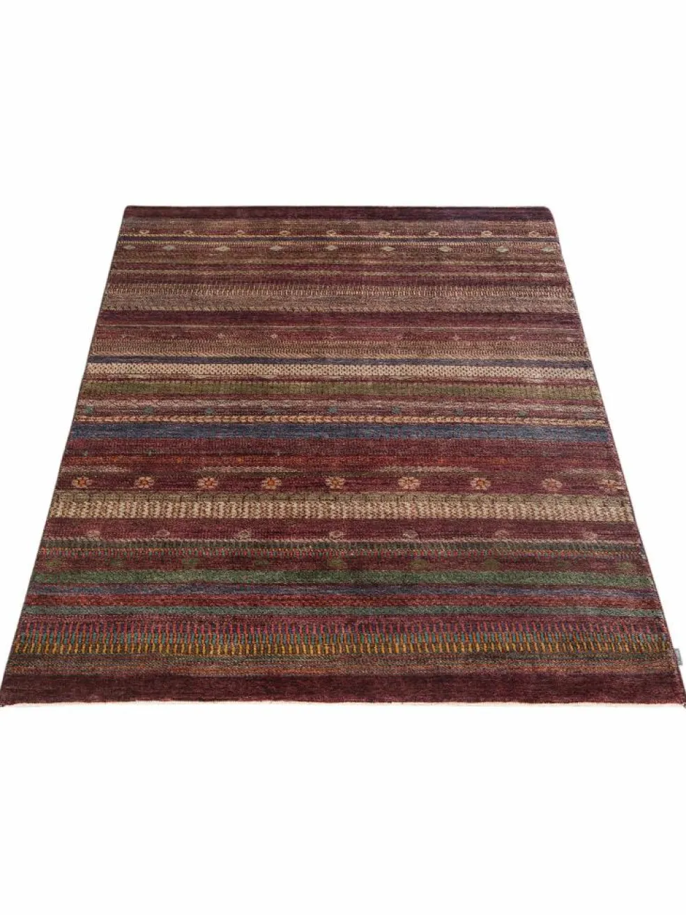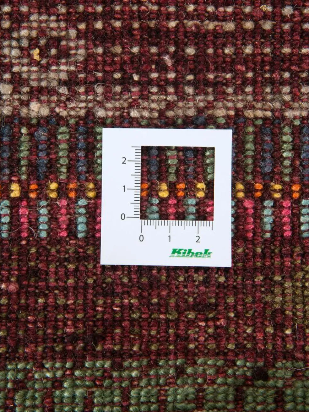 ist eine ungewöhnliche moderne Variation des traditionellen persichen Gabbehs. Er ist kürzer im Flor und feiner geknüpft. Es gibt zahllose Neukreationen in individuellen und einzigartigen Farben und Mustern.| Gesamthöhe: | ca. 7 mm |