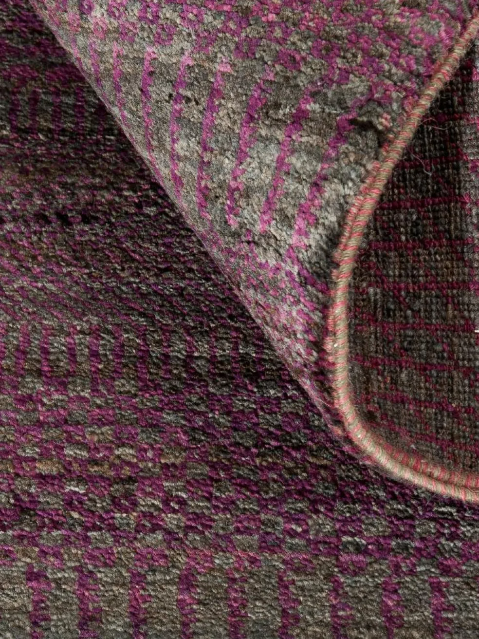 ist eine ungewöhnliche moderne Variation des traditionellen persichen Gabbehs. Er ist kürzer im Flor und feiner geknüpft. Es gibt zahllose Neukreationen in individuellen und einzigartigen Farben und Mustern.| Gesamthöhe: | ca. 9 mm |