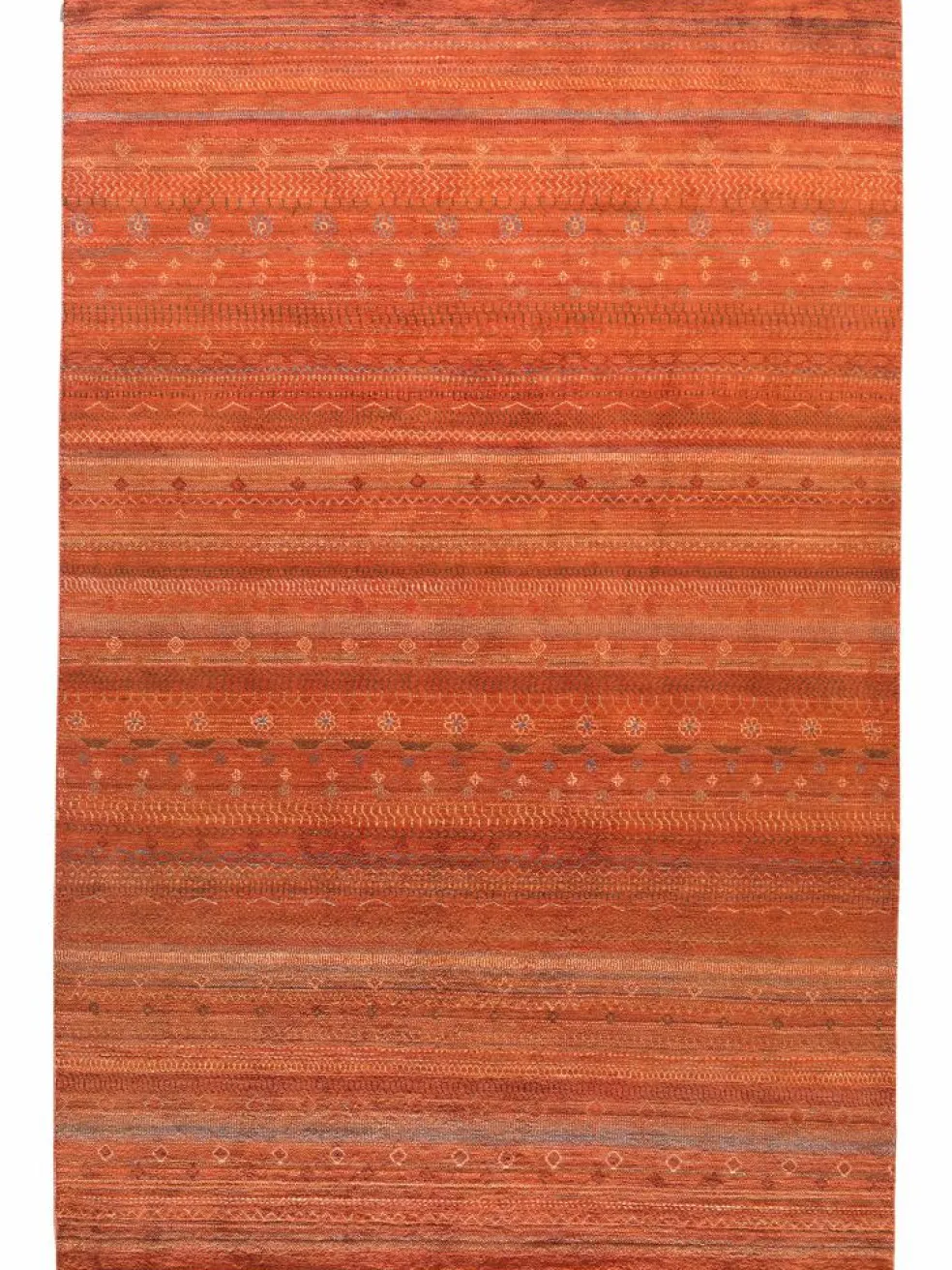 ist eine ungewöhnliche moderne Variation des traditionellen persichen Gabbehs. Er ist kürzer im Flor und feiner geknüpft. Es gibt zahllose Neukreationen in individuellen und einzigartigen Farben und Mustern.| Gesamthöhe: | ca. 7 mm |
