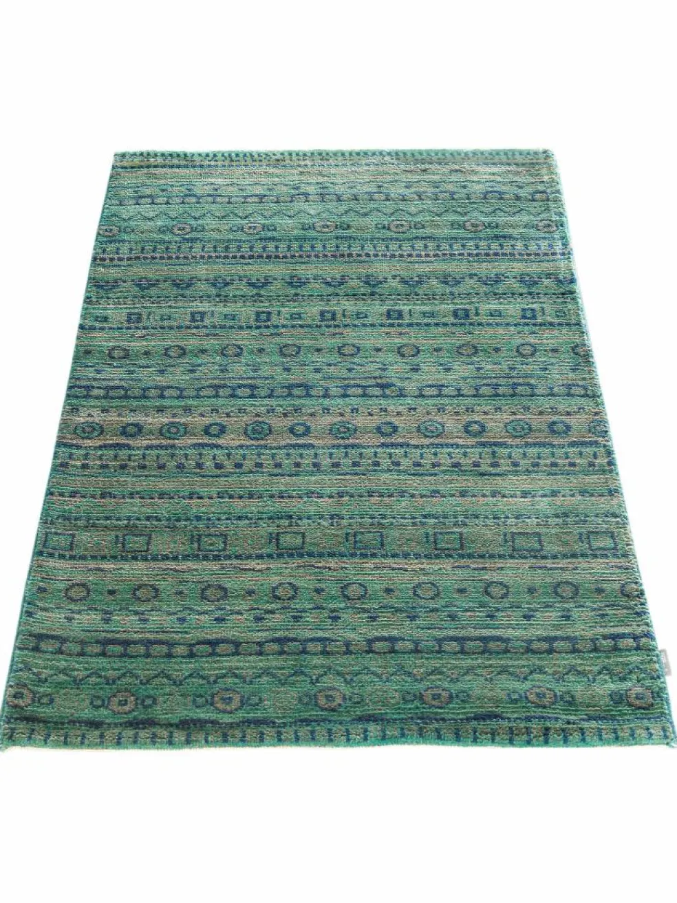 ist eine ungewöhnliche moderne Variation des traditionellen persichen Gabbehs. Er ist kürzer im Flor und feiner geknüpft. Es gibt zahllose Neukreationen in individuellen und einzigartigen Farben und Mustern.| Gesamthöhe: | ca. 10 mm |