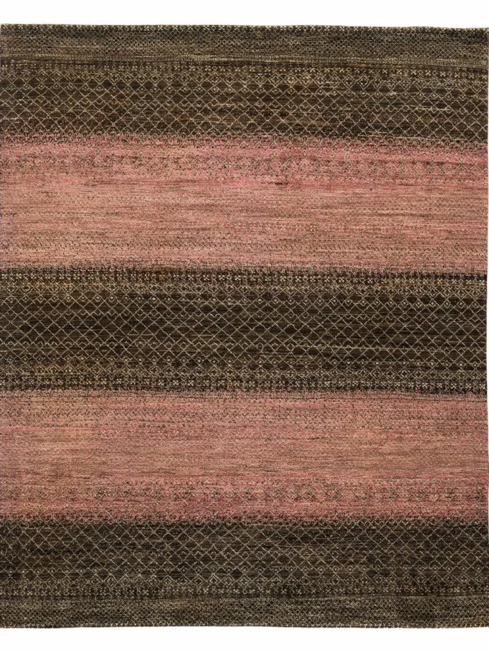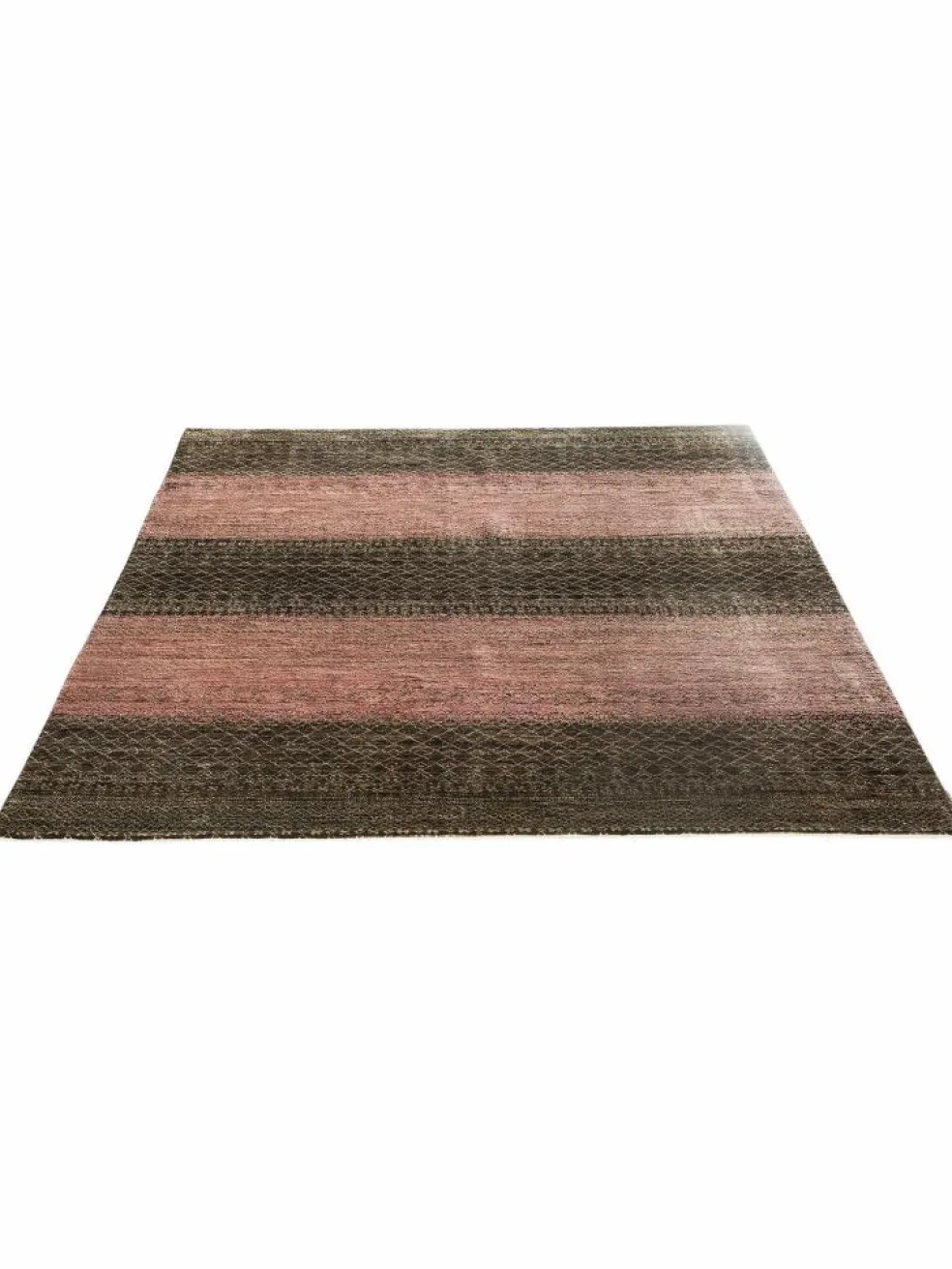 ist eine ungewöhnliche moderne Variation des traditionellen persichen Gabbehs. Er ist kürzer im Flor und feiner geknüpft. Es gibt zahllose Neukreationen in individuellen und einzigartigen Farben und Mustern.| Gesamthöhe: | ca. 10 mm |