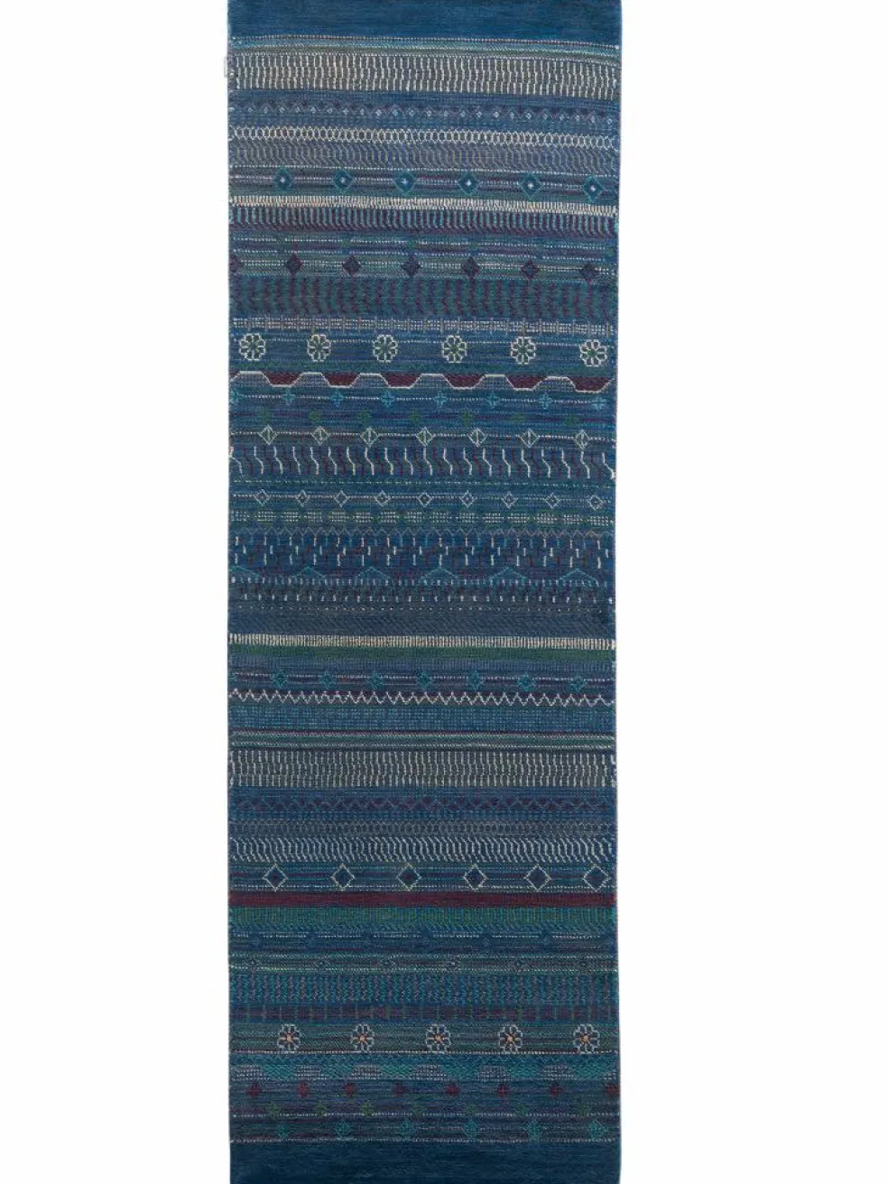 ist eine ungewöhnliche moderne Variation des traditionellen persichen Gabbehs. Er ist kürzer im Flor und feiner geknüpft. Es gibt zahllose Neukreationen in individuellen und einzigartigen Farben und Mustern.| Gesamthöhe: | ca. 10 mm |