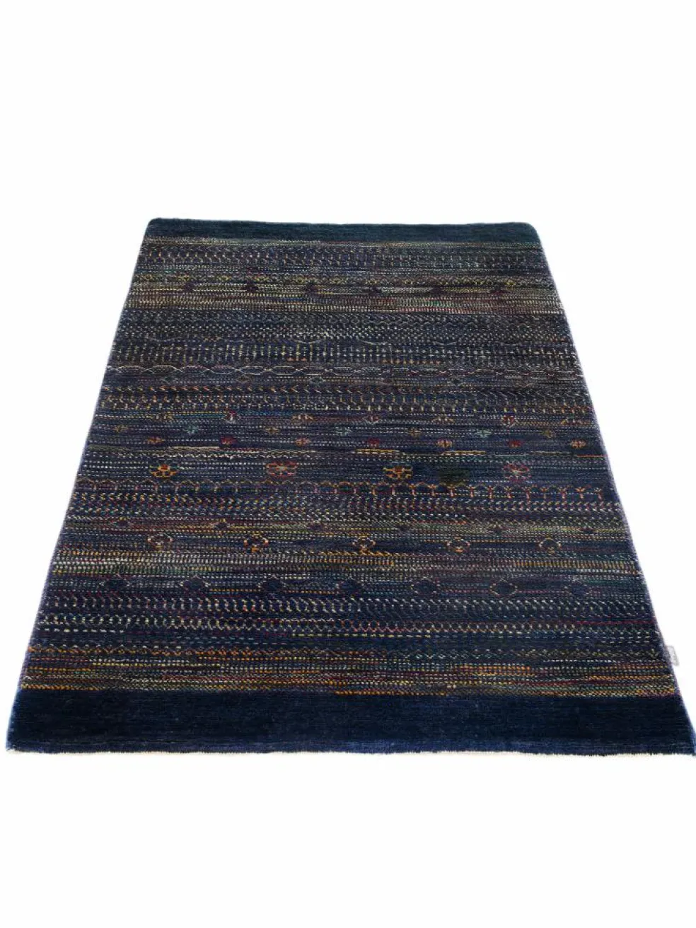 ist eine ungewöhnliche moderne Variation des traditionellen persichen Gabbehs. Er ist kürzer im Flor und feiner geknüpft. Es gibt zahllose Neukreationen in individuellen und einzigartigen Farben und Mustern. – Fein geknüpft inDouble-Knot