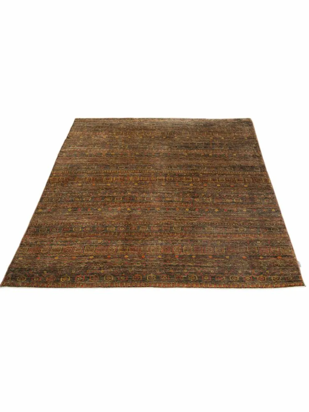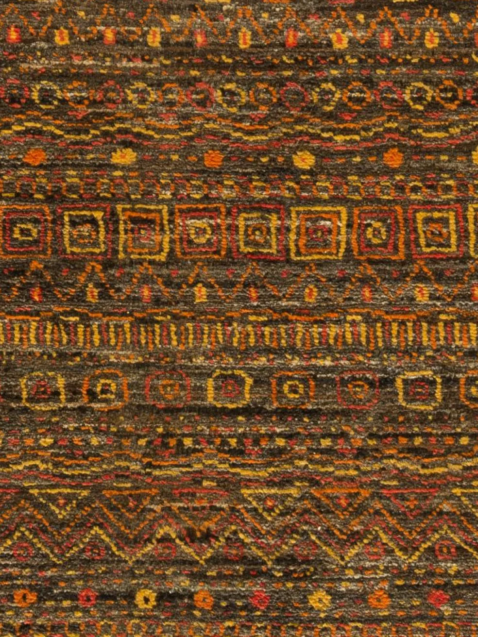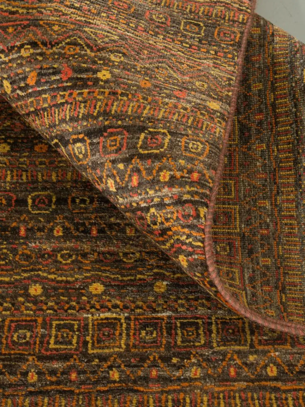 ist eine ungewöhnliche moderne Variation des traditionellen persichen Gabbehs. Er ist kürzer im Flor und feiner geknüpft. Es gibt zahllose Neukreationen in individuellen und einzigartigen Farben und Mustern.| Gesamthöhe: | ca. 9 mm |