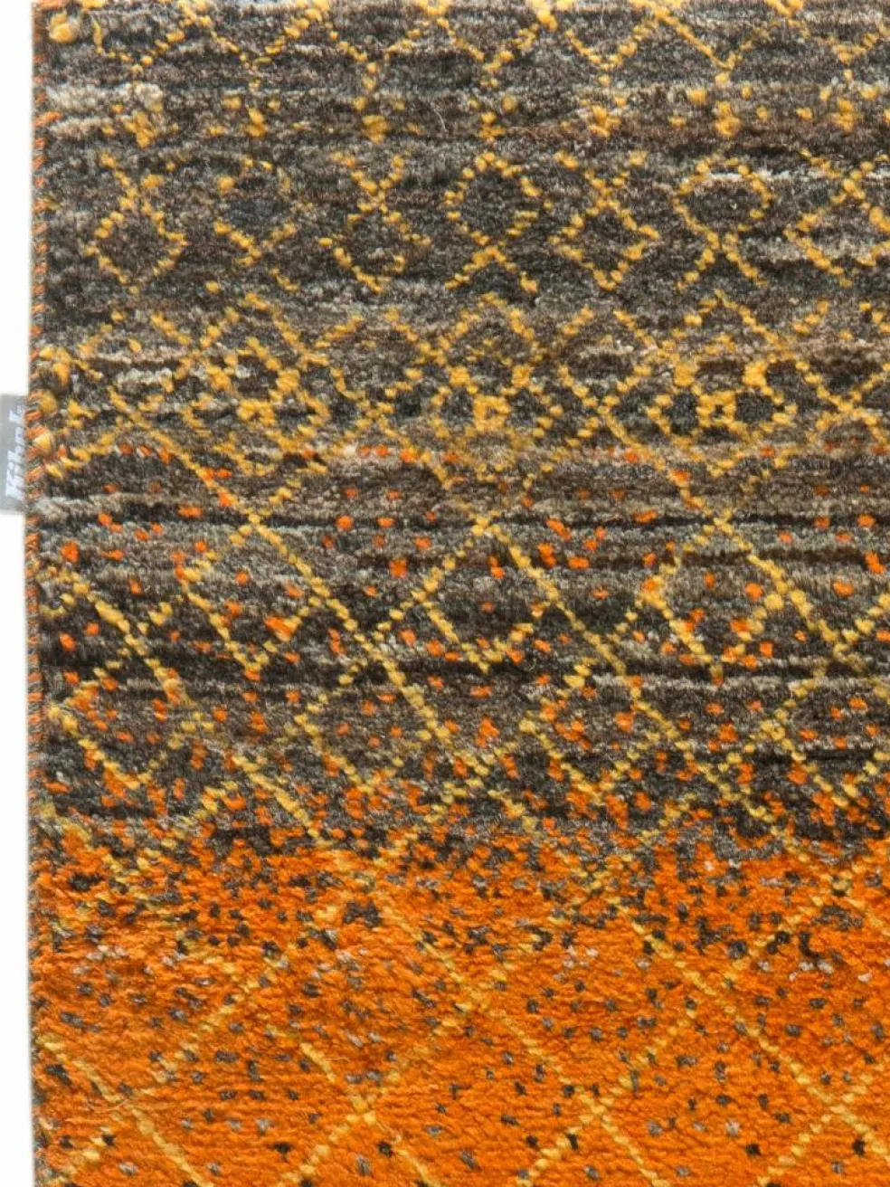 ist eine ungewöhnliche moderne Variation des traditionellen persichen Gabbehs. Er ist kürzer im Flor und feiner geknüpft. Es gibt zahllose Neukreationen in individuellen und einzigartigen Farben und Mustern.| Gesamthöhe: | ca. 10 mm |
