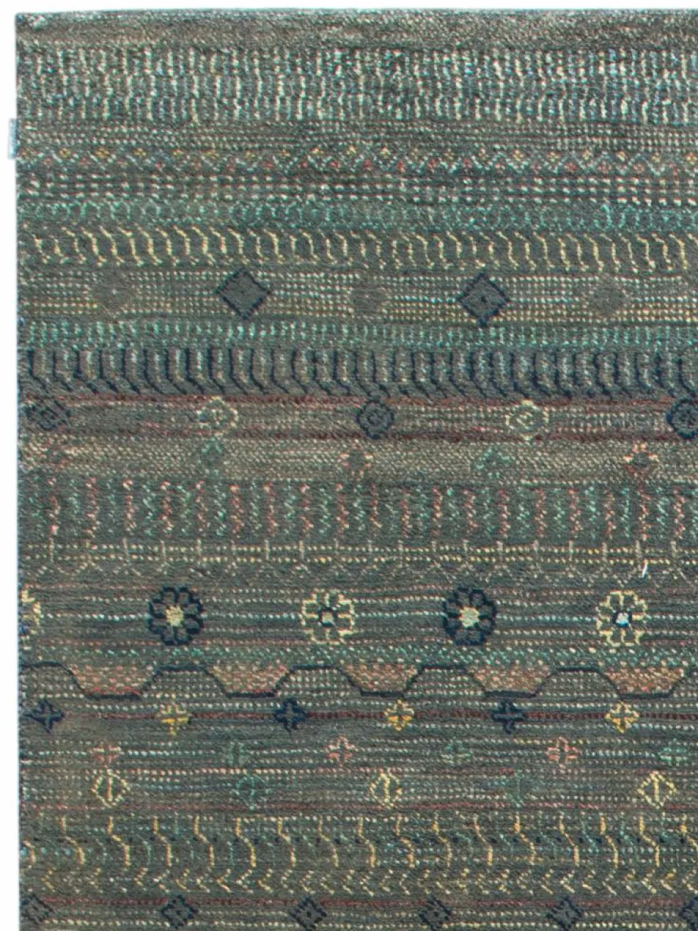 ist eine ungewöhnliche moderne Variation des traditionellen persichen Gabbehs. Er ist kürzer im Flor und feiner geknüpft. Es gibt zahllose Neukreationen in individuellen und einzigartigen Farben und Mustern.| Gesamthöhe: | ca. 7 mm |