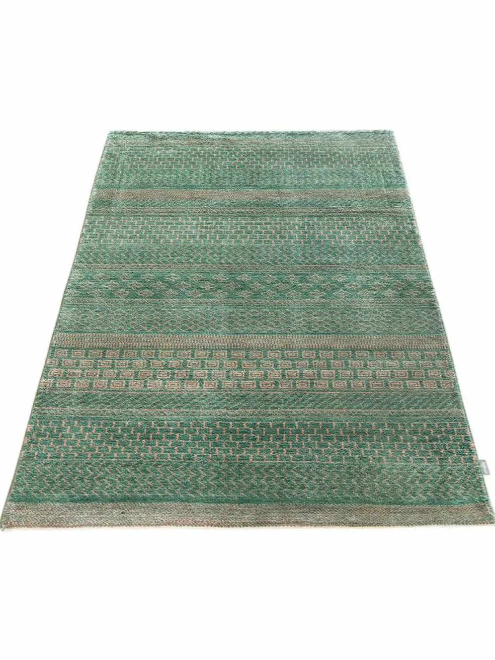 ist eine ungewöhnliche moderne Variation des traditionellen persichen Gabbehs. Er ist kürzer im Flor und feiner geknüpft. Es gibt zahllose Neukreationen in individuellen und einzigartigen Farben und Mustern.| Gesamthöhe: | ca. 10 mm |