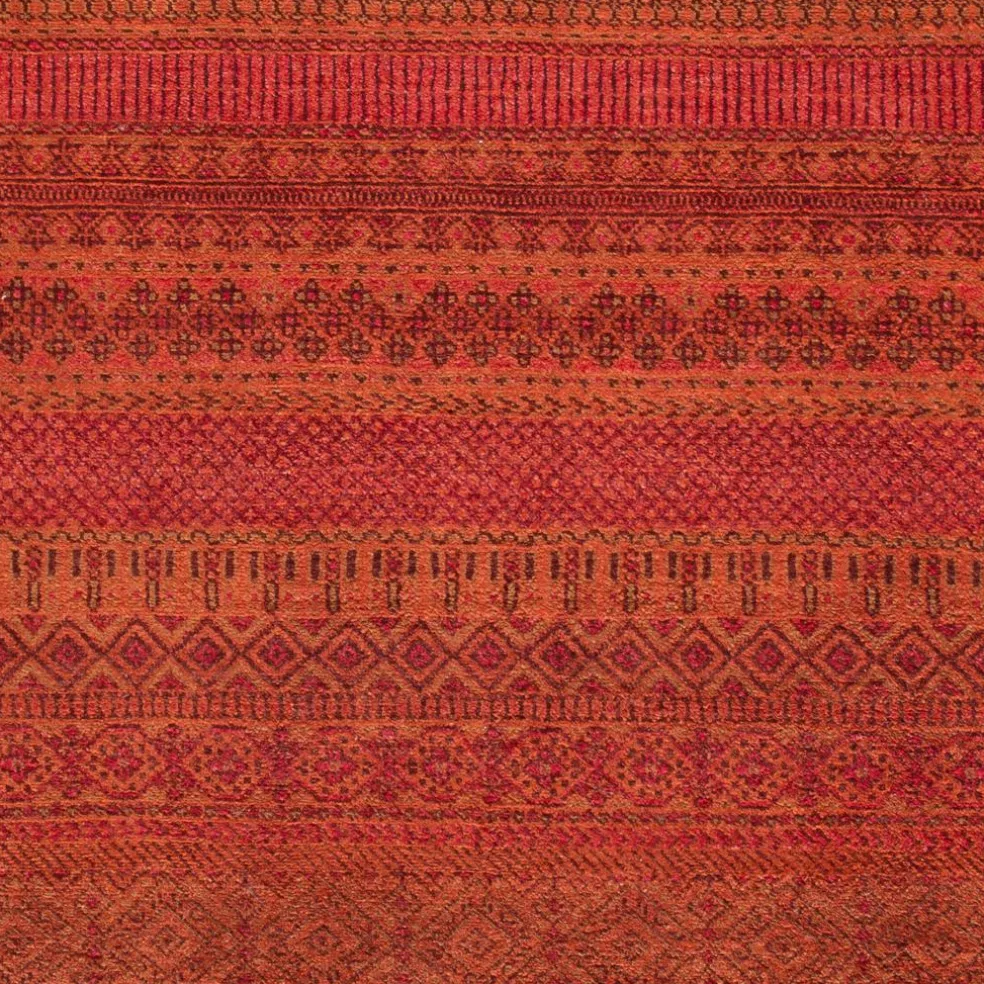 ist eine ungewöhnliche moderne Variation des traditionellen persichen Gabbehs. Er ist kürzer im Flor und feiner geknüpft. Es gibt zahllose Neukreationen in individuellen und einzigartigen Farben und Mustern.| Gesamthöhe: | ca. 12 mm |