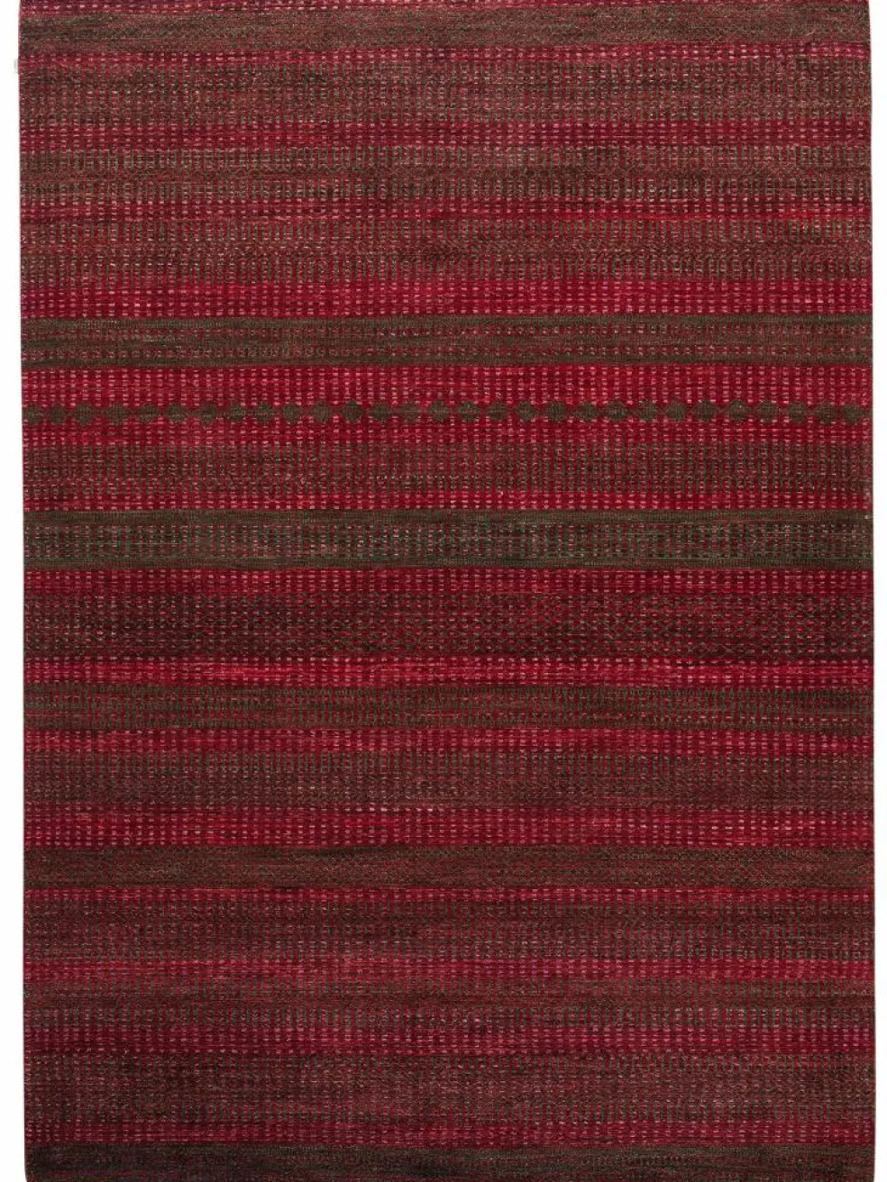 ist eine ungewöhnliche moderne Variation des traditionellen persichen Gabbehs. Er ist kürzer im Flor und feiner geknüpft. Es gibt zahllose Neukreationen in individuellen und einzigartigen Farben und Mustern.| Gesamthöhe: | ca. 10 mm |