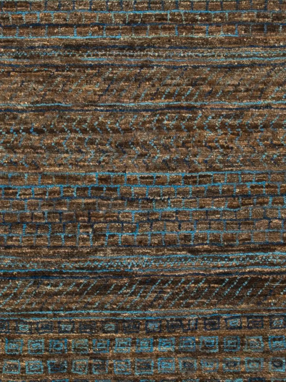 ist eine ungewöhnliche moderne Variation des traditionellen persichen Gabbehs. Er ist kürzer im Flor und feiner geknüpft. Es gibt zahllose Neukreationen in individuellen und einzigartigen Farben und Mustern.| Gesamthöhe: | ca. 10 mm |