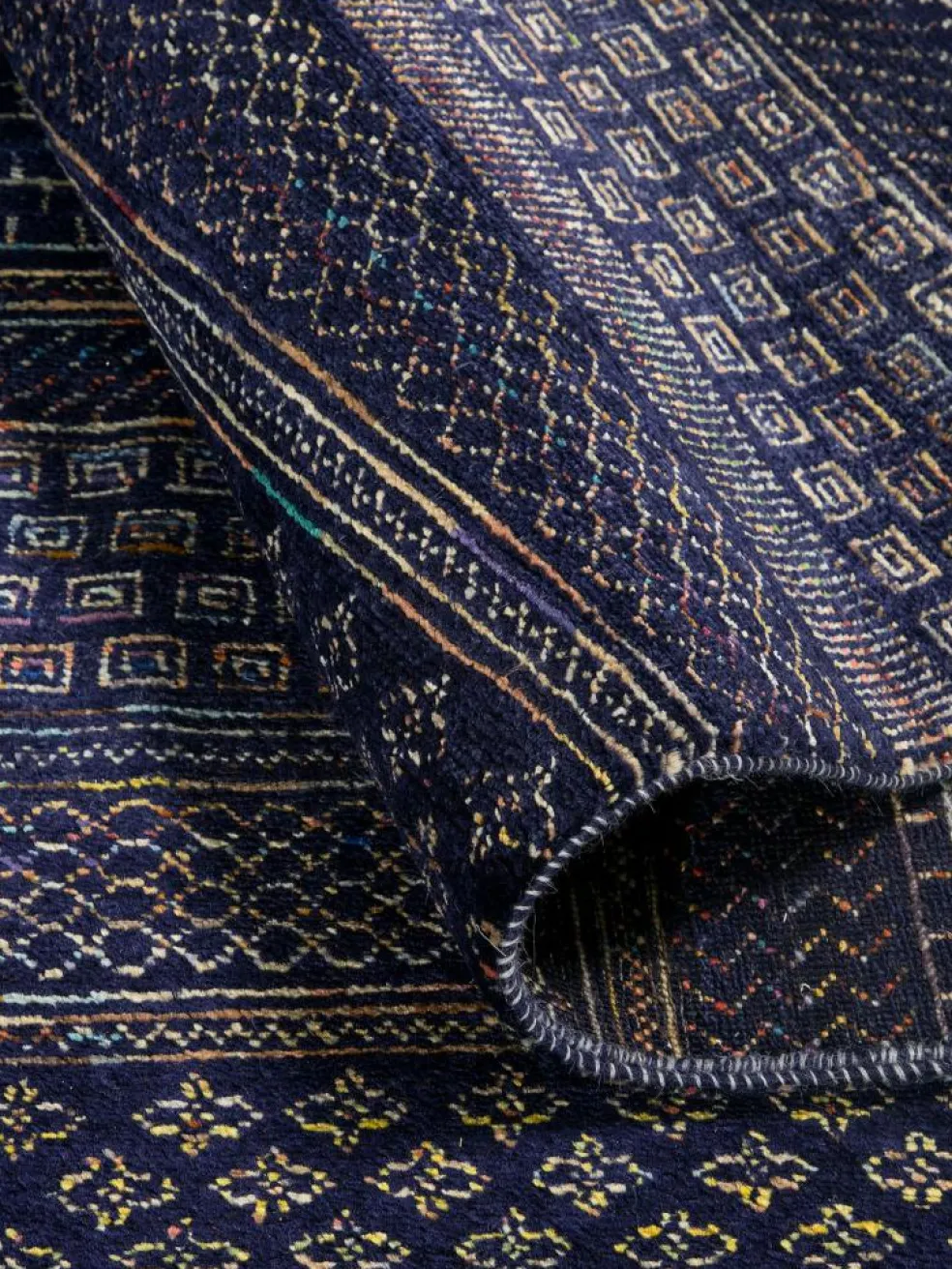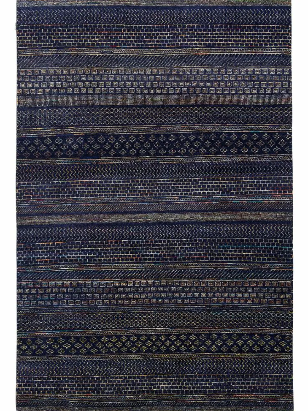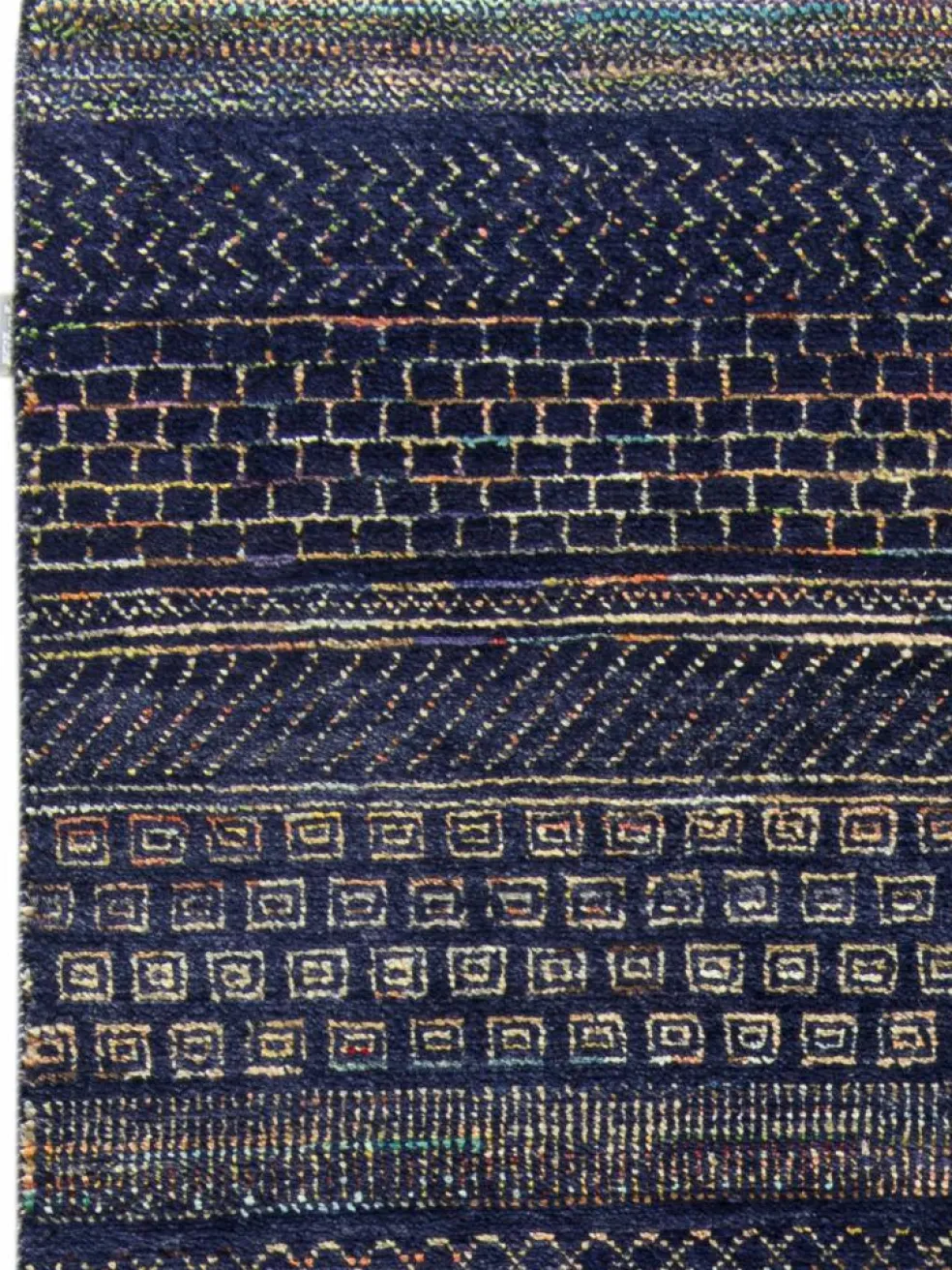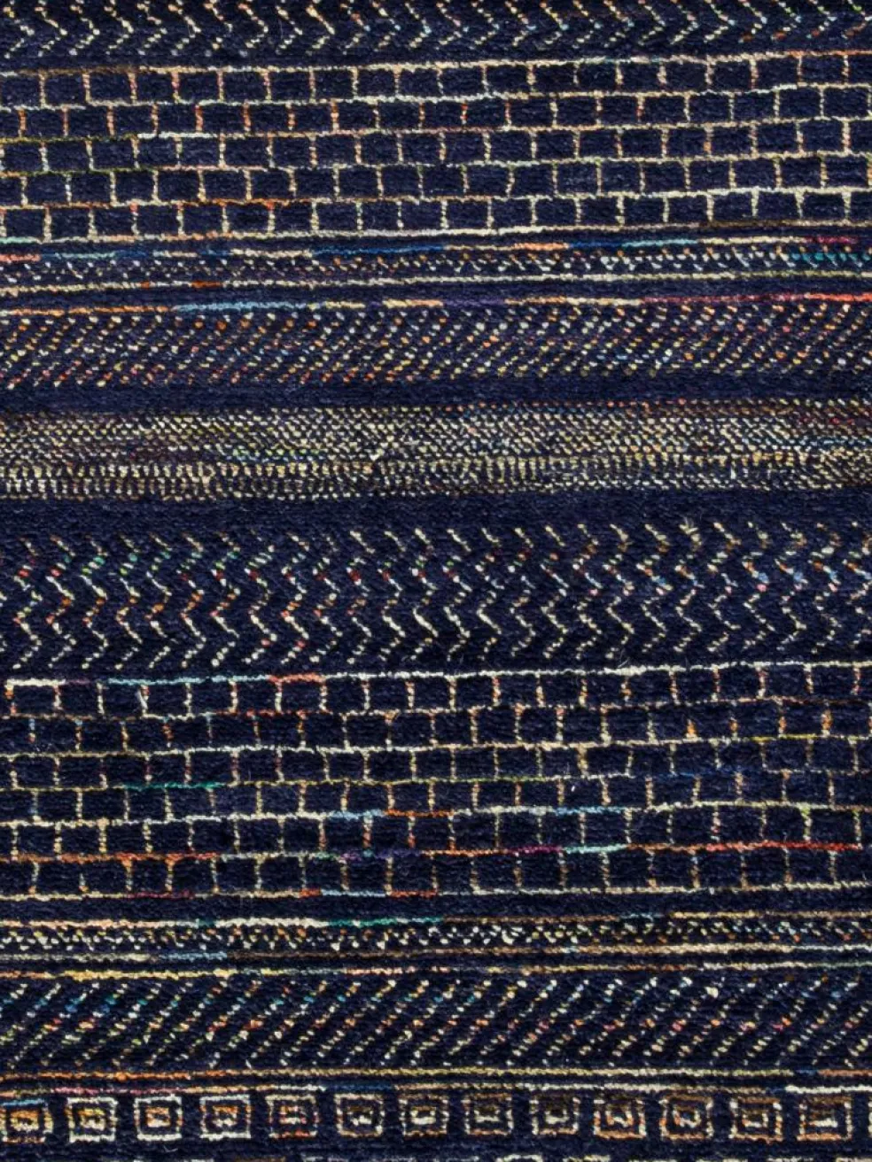 ist eine ungewöhnliche moderne Variation des traditionellen persichen Gabbehs. Er ist kürzer im Flor und feiner geknüpft. Es gibt zahllose Neukreationen in individuellen und einzigartigen Farben und Mustern. – Fein geknüpft inDouble-Knot