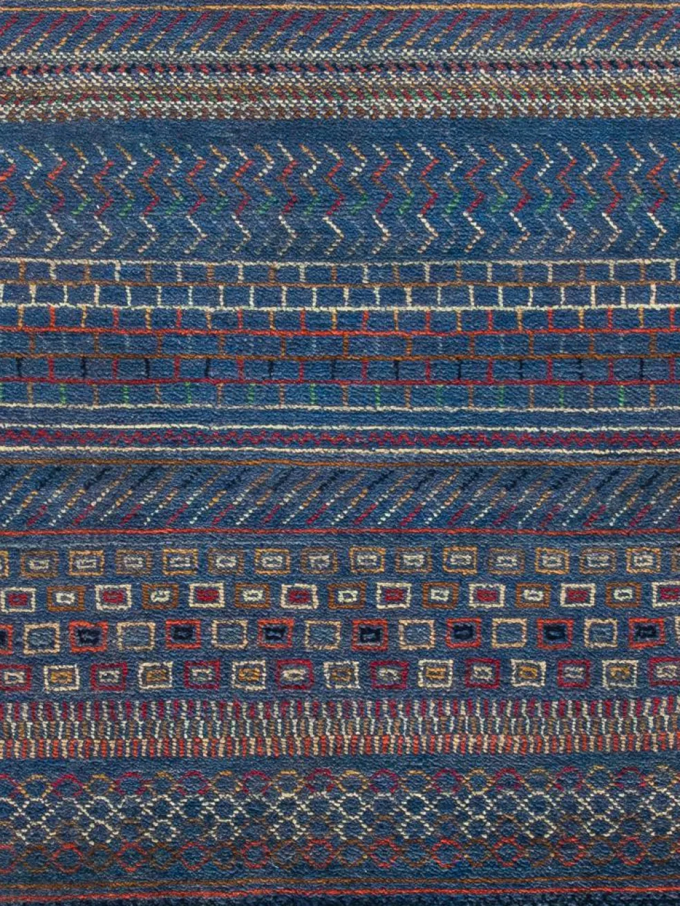 ist eine ungewöhnliche moderne Variation des traditionellen persichen Gabbehs. Er ist kürzer im Flor und feiner geknüpft. Es gibt zahllose Neukreationen in individuellen und einzigartigen Farben und Mustern.| Gesamthöhe: | ca. 10 mm |