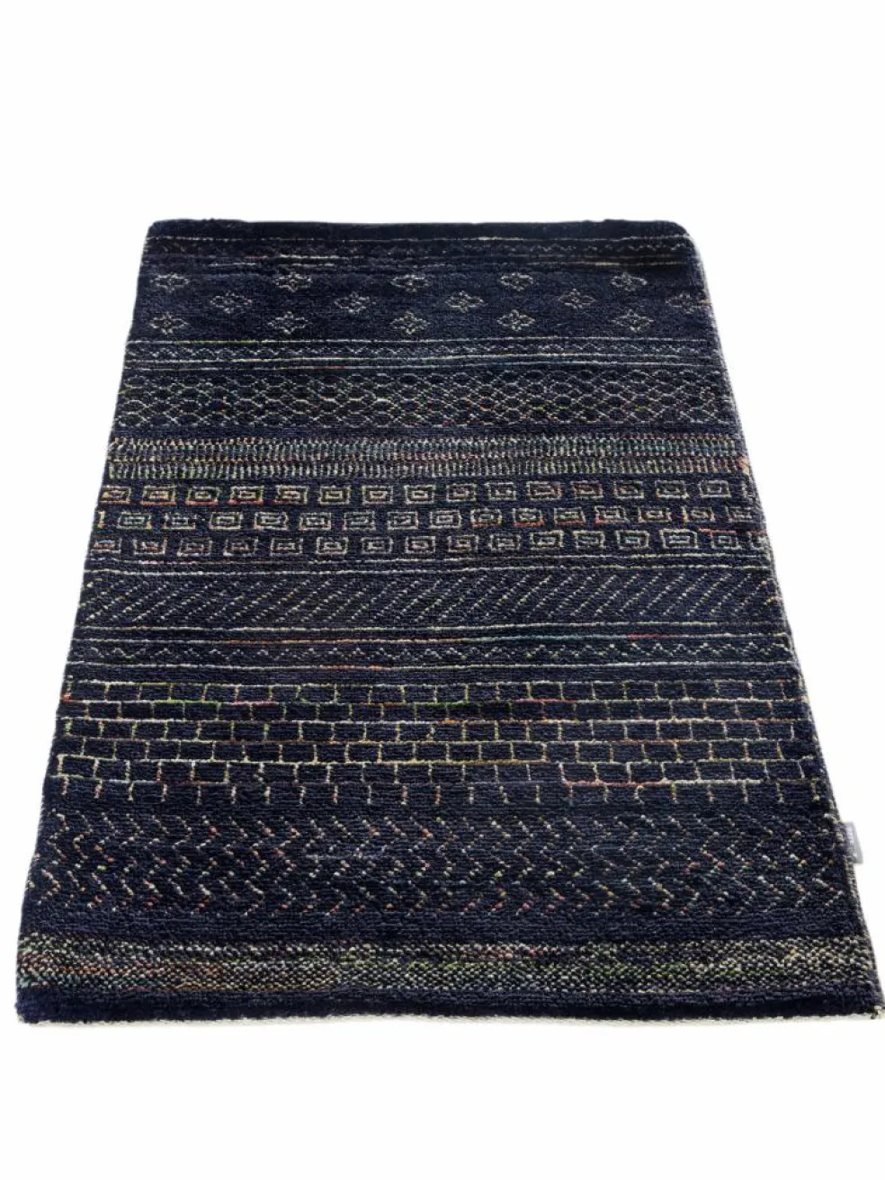 ist eine ungewöhnliche moderne Variation des traditionellen persichen Gabbehs. Er ist kürzer im Flor und feiner geknüpft. Es gibt zahllose Neukreationen in individuellen und einzigartigen Farben und Mustern. – Fein geknüpft inDouble-Knot