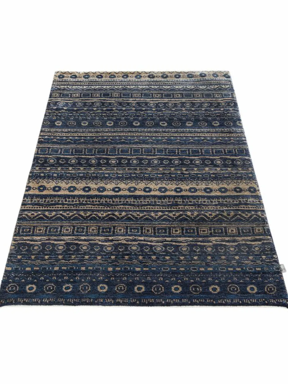 ist eine ungewöhnliche moderne Variation des traditionellen persichen Gabbehs. Er ist kürzer im Flor und feiner geknüpft. Es gibt zahllose Neukreationen in individuellen und einzigartigen Farben und Mustern.| Gesamthöhe: | ca. 10 mm |