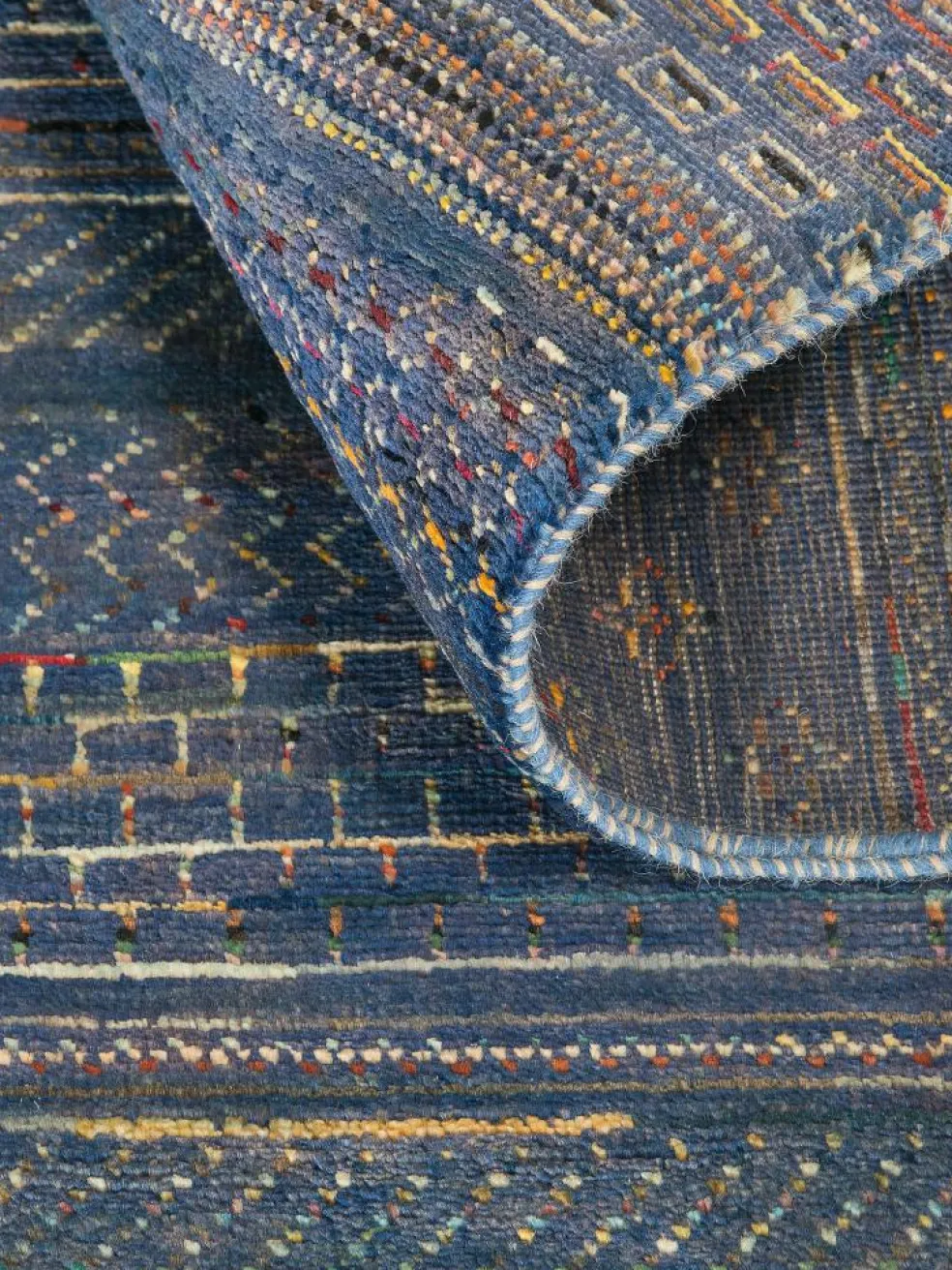 ist eine ungewöhnliche moderne Variation des traditionellen persichen Gabbehs. Er ist kürzer im Flor und feiner geknüpft. Es gibt zahllose Neukreationen in individuellen und einzigartigen Farben und Mustern.| Gesamthöhe: | ca. 10 mm |