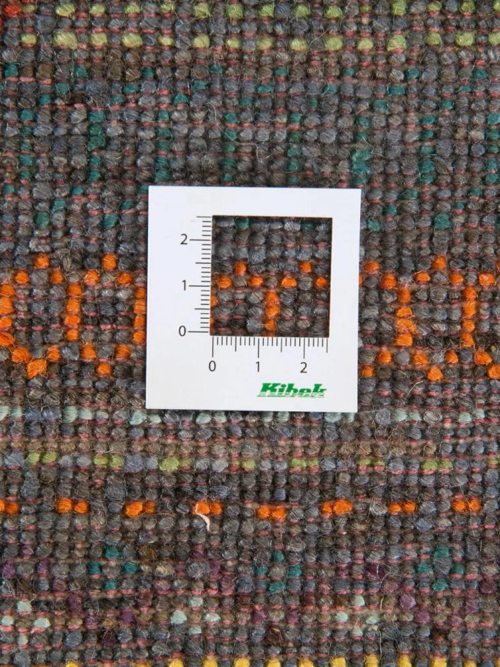 ist eine ungewöhnliche moderne Variation des traditionellen persichen Gabbehs. Er ist kürzer im Flor und feiner geknüpft. Es gibt zahllose Neukreationen in individuellen und einzigartigen Farben und Mustern.| Gesamthöhe: | ca. 10 mm |