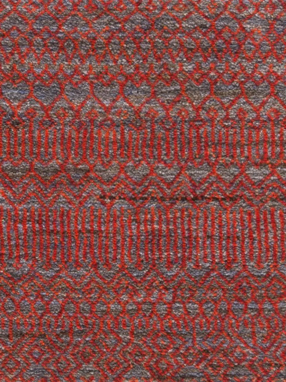 ist eine ungewöhnliche moderne Variation des traditionellen persichen Gabbehs. Er ist kürzer im Flor und feiner geknüpft. Es gibt zahllose Neukreationen in individuellen und einzigartigen Farben und Mustern.| Gesamthöhe: | ca. 10 mm |