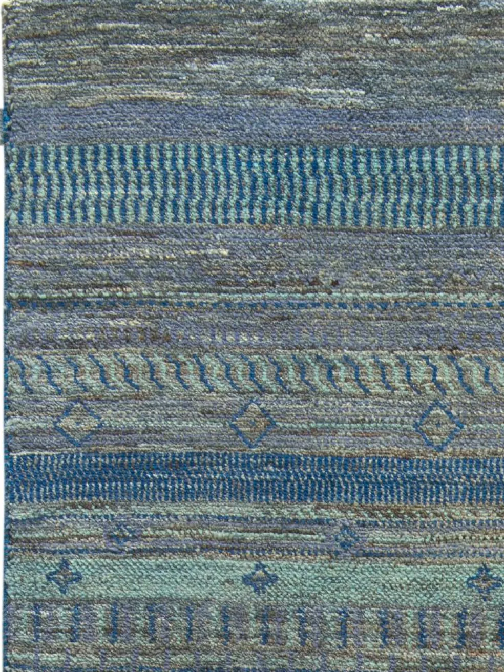 ist eine ungewöhnliche moderne Variation des traditionellen persichen Gabbehs. Er ist kürzer im Flor und feiner geknüpft. Es gibt zahllose Neukreationen in individuellen und einzigartigen Farben und Mustern.| Gesamthöhe: | ca. 7 mm |