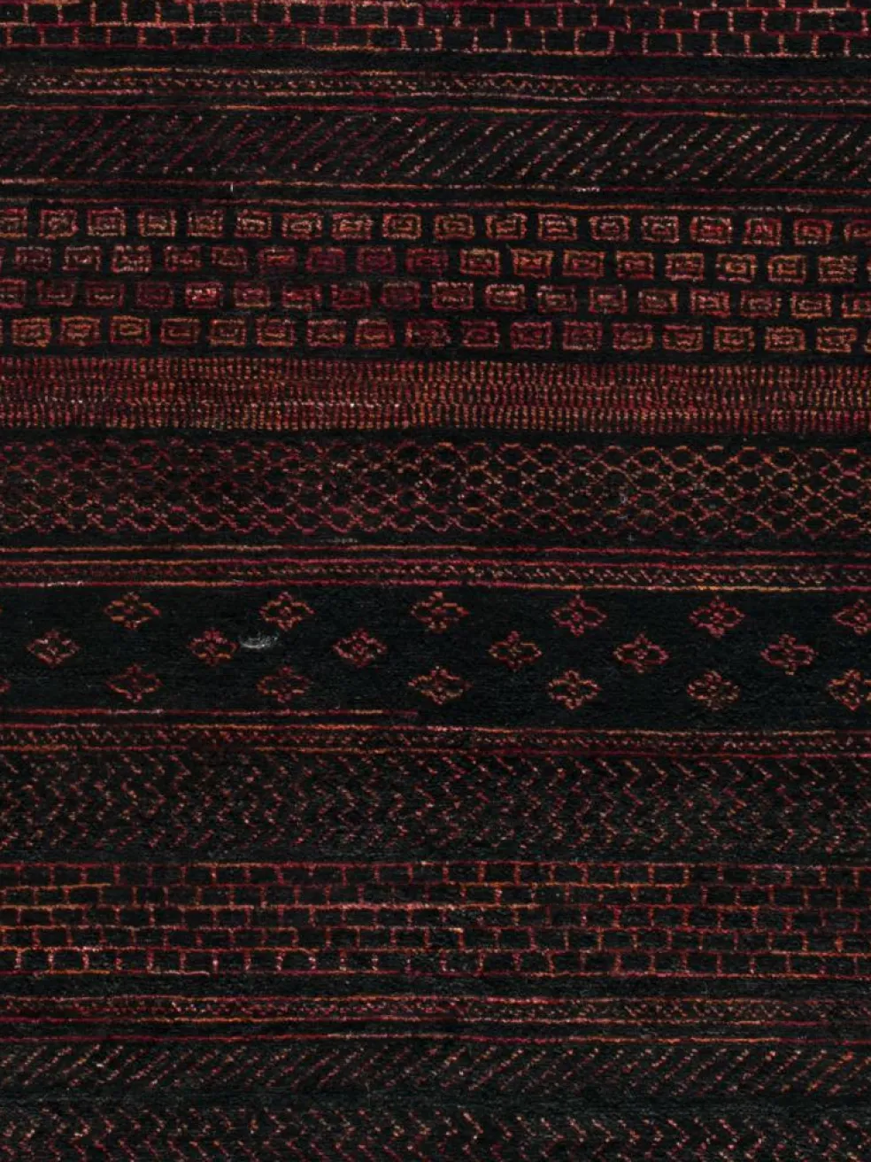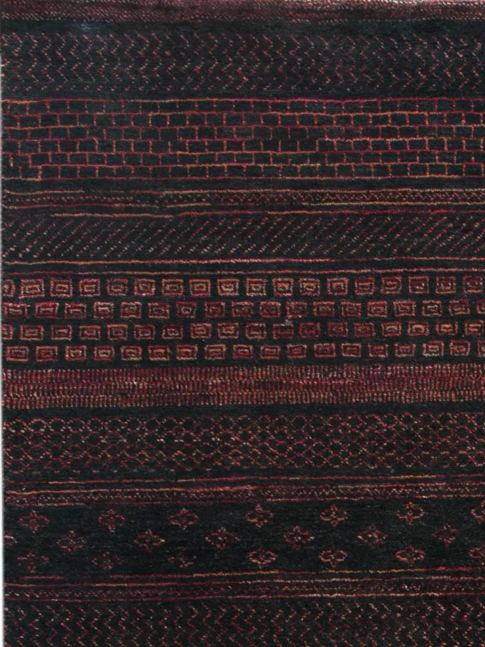 ist eine ungewöhnliche moderne Variation des traditionellen persichen Gabbehs. Er ist kürzer im Flor und feiner geknüpft. Es gibt zahllose Neukreationen in individuellen und einzigartigen Farben und Mustern.| Gesamthöhe: | ca. 9 mm |