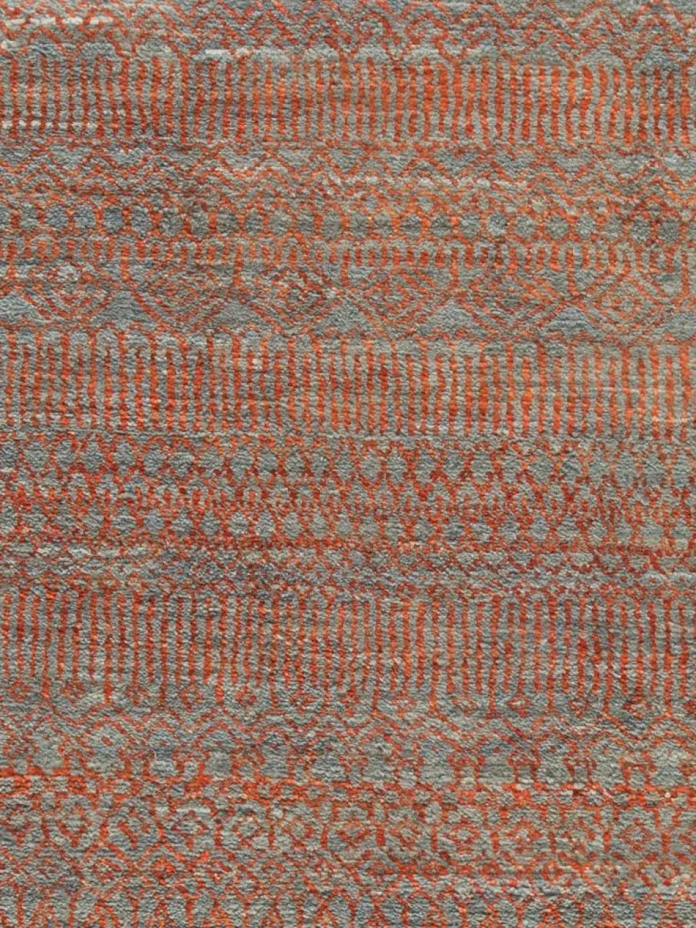 ist eine ungewöhnliche moderne Variation des traditionellen persichen Gabbehs. Er ist kürzer im Flor und feiner geknüpft. Es gibt zahllose Neukreationen in individuellen und einzigartigen Farben und Mustern.| Gesamthöhe: | ca. 10 mm |