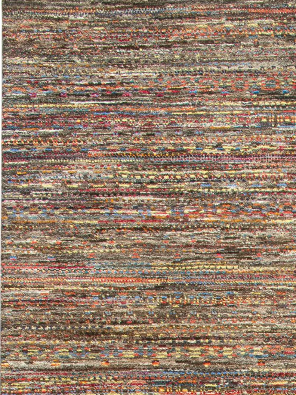 ist eine ungewöhnliche moderne Variation des traditionellen persichen Gabbehs. Er ist kürzer im Flor und feiner geknüpft. Es gibt zahllose Neukreationen in individuellen und einzigartigen Farben und Mustern. – Fein geknüpft inDouble-Knot