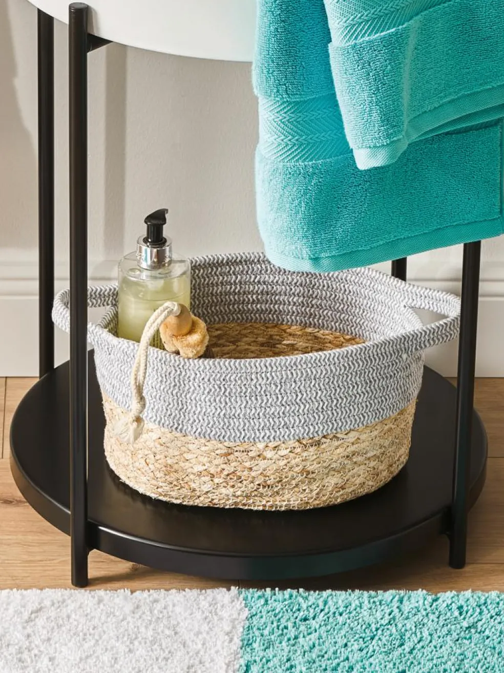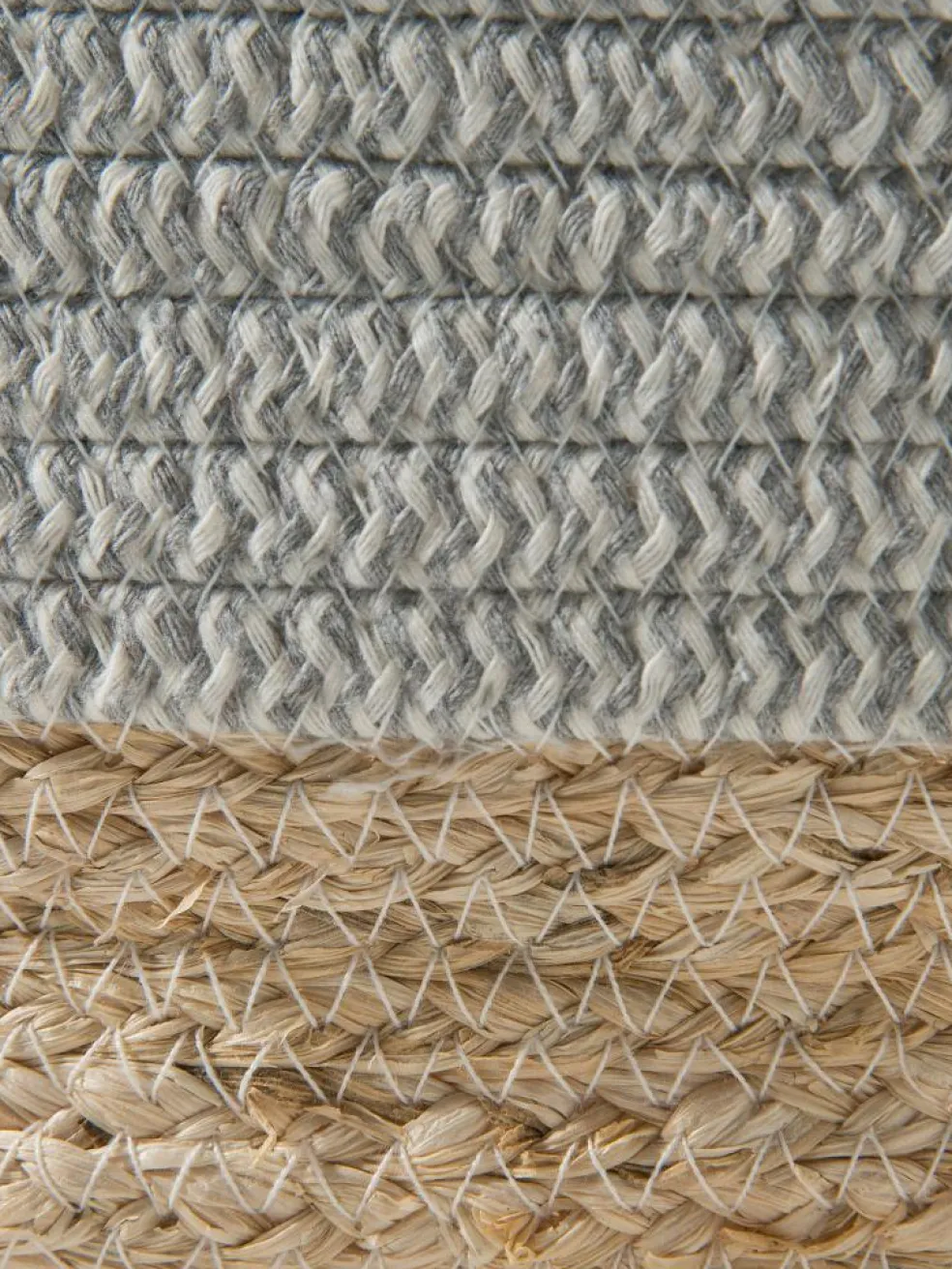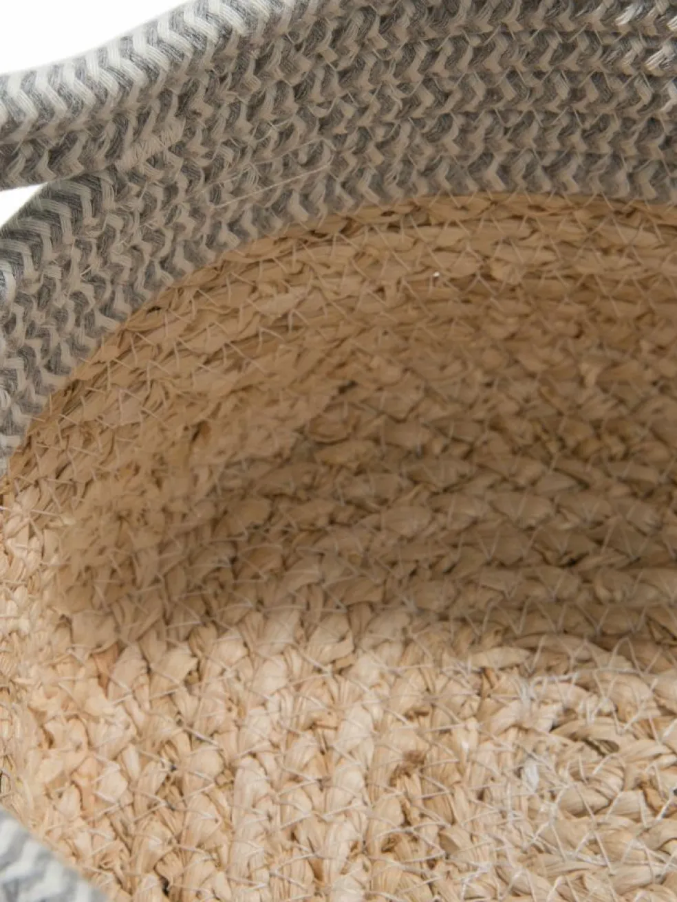 Ovaler Bicolor-Flechtkorb aus Baumwolle und Maisgeflecht. Mit Griffen.