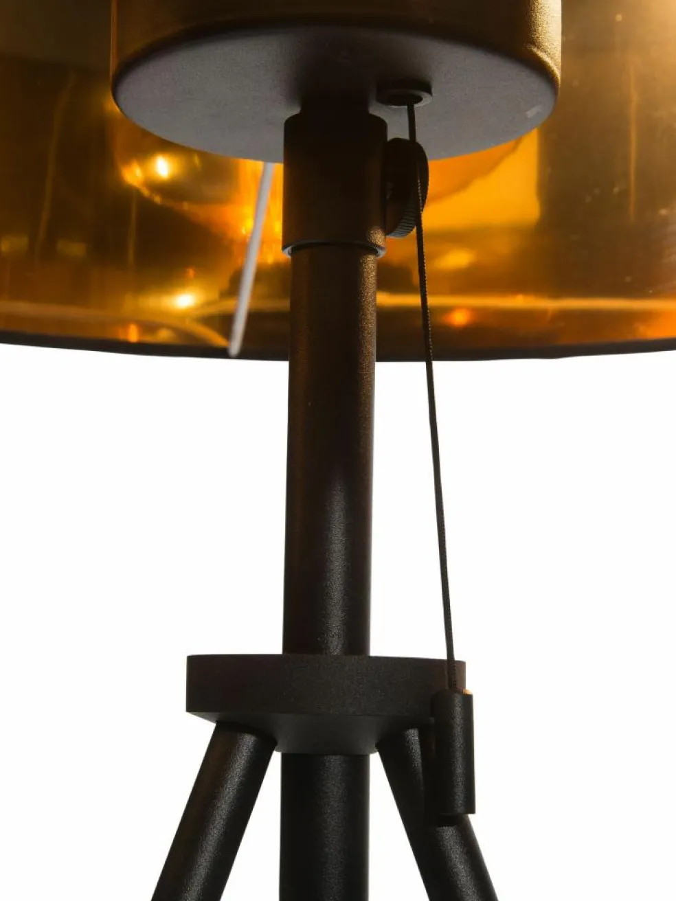 Diese Standleuchte wird mit einem innen vergoldeten Lampenschirm geliefert. Das Licht wird durch die Vergoldung als warmes, mit einer Abendstimmung vergleichbares, Sonnenlicht empfunden. Exkl. Leuchtmittel E27 40W.
