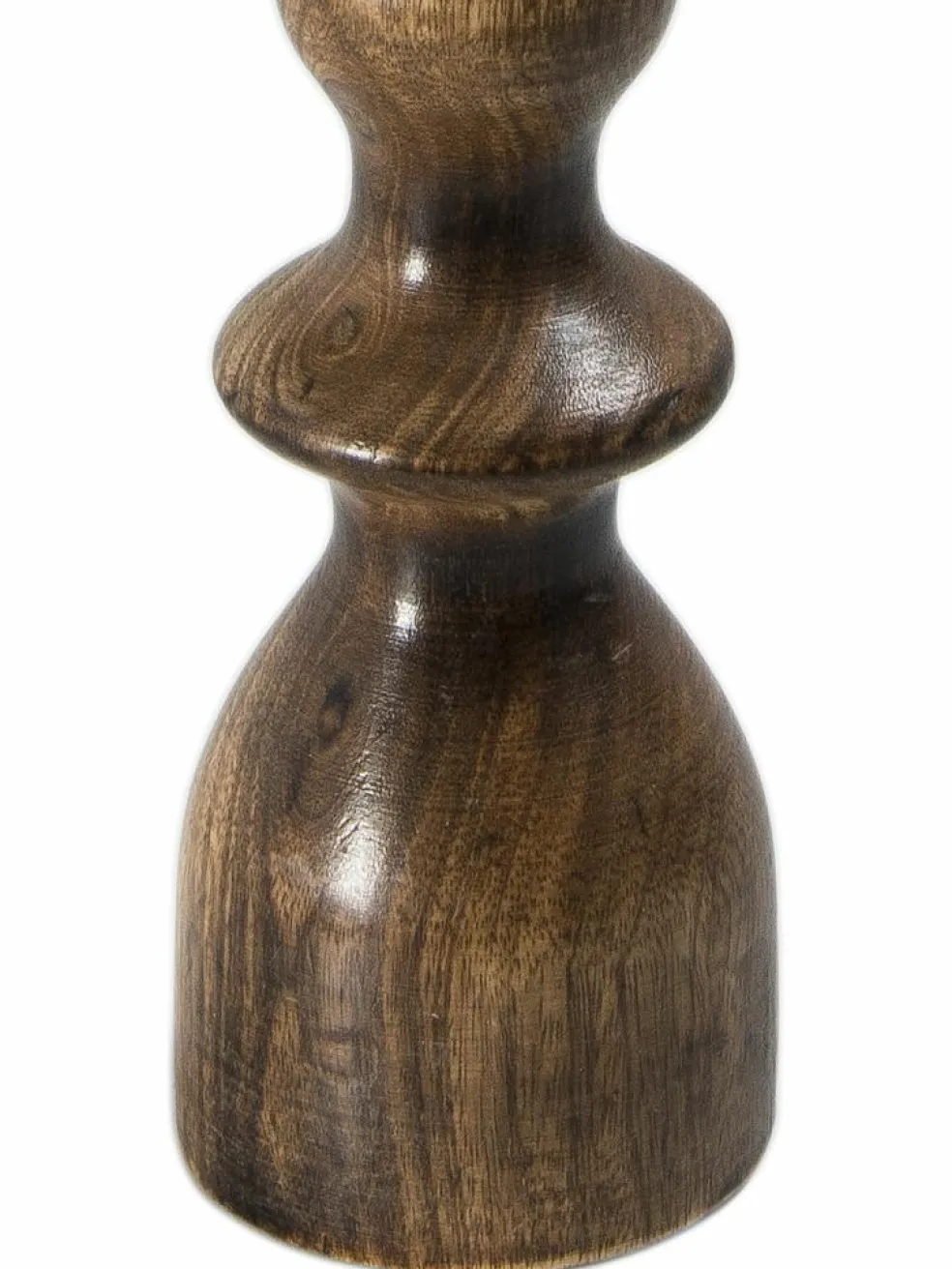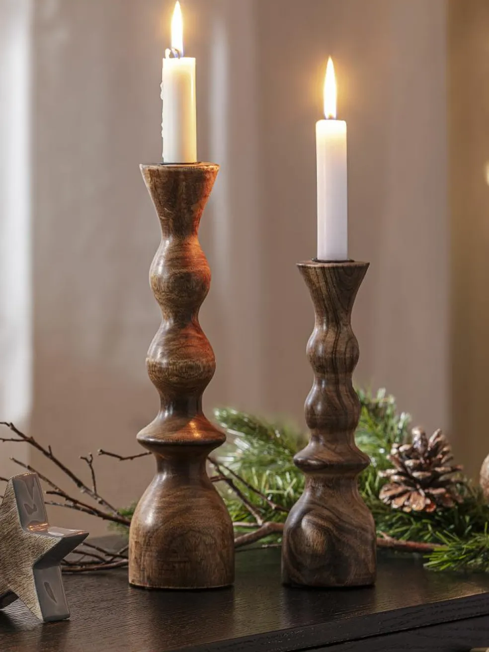 Cutin ist ein wunderschöner Kerzenhalter aus Mangoholz. Eine dunkle Holzlasur und die geschwungene Optik unterstreichen das hochwertige Design. Der Kerzenhalter ist für handelsübliche Stabkerzen geeignet.