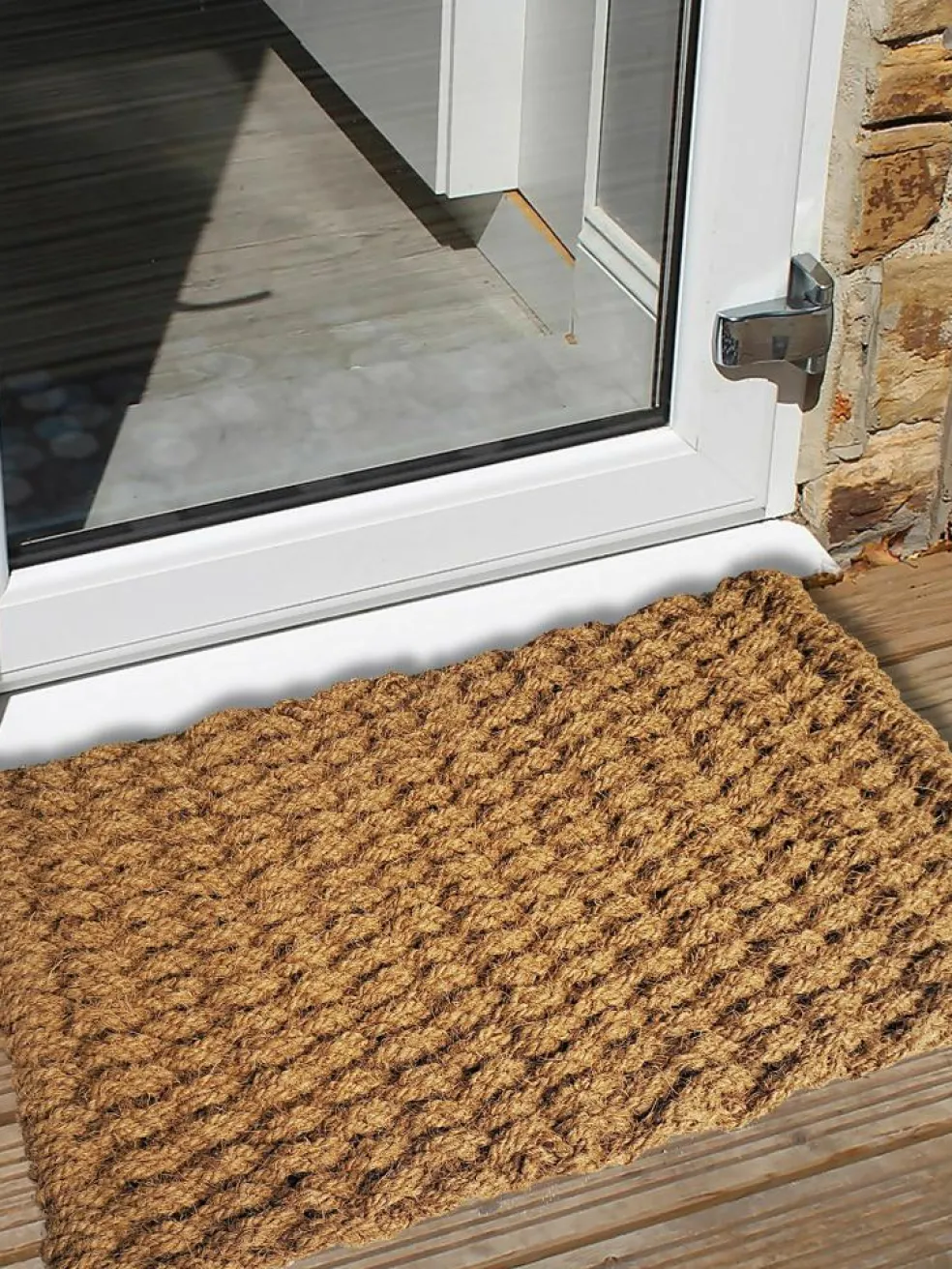 Unsere Dalma Fußmatte besteht aus 100 % Kokosfasern. Diese wurden miteinander verflochten, sodass eine besondere, rustikale Optik entsteht. Gleichzeitig ist die Fußmatte dadurch beidseitig verwendbar. Dalma ist für den überdachten Außenbereich und für den Zwischenbereich geeignet. Gesamthöhe: ca. 35 mm.