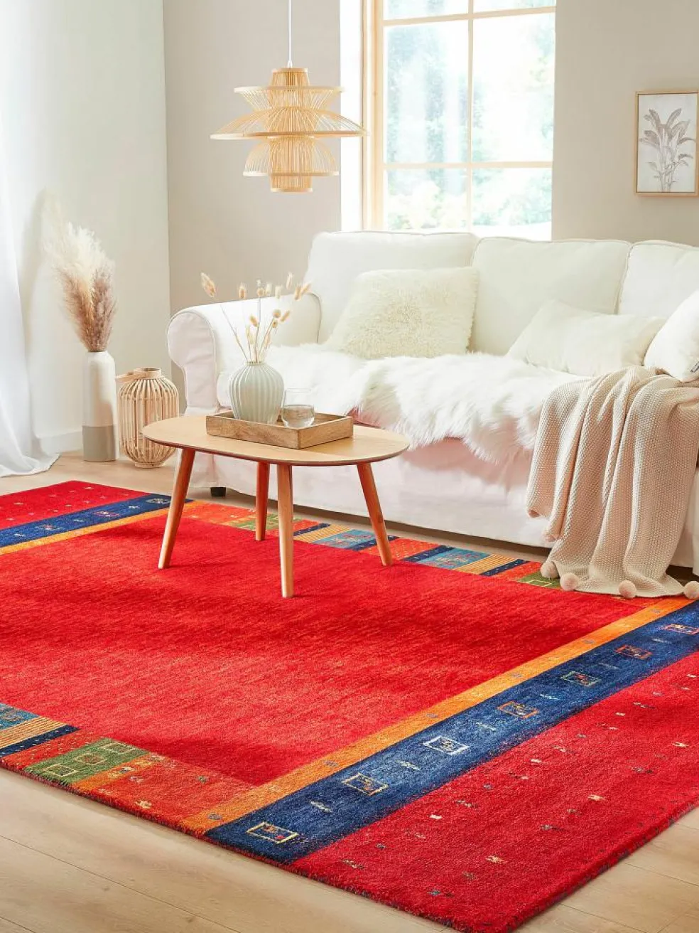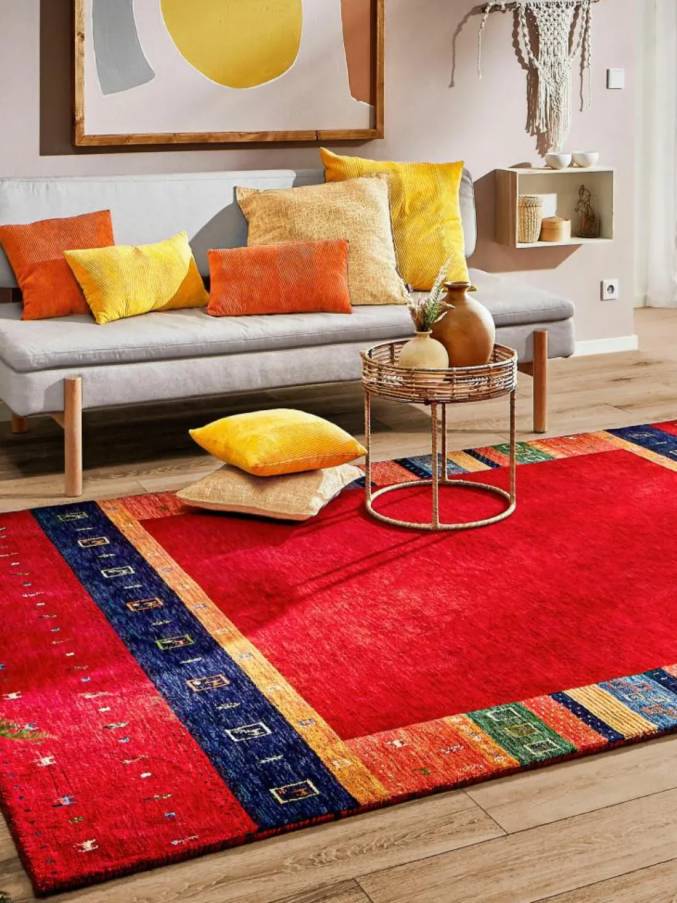 -Teppich ist handgearbeitet in schwerer, behaglicher Schurwollqualität.| Art: | Gabbeh |