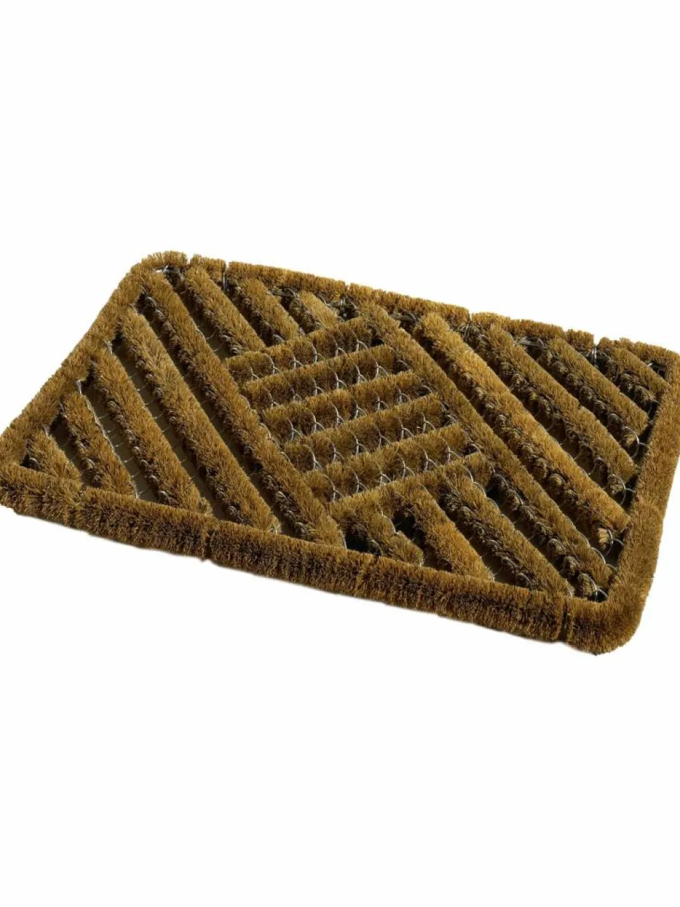 Ein praktischer Begleiter für den Eingangsbereich. Die einzelnen Kokosveloursfasern sind aufwändig um ein Stahlgerüst gearbeitet. Dadurch kann selbst grober Schmutz besonders gut von den Sohlen entfernt werden. Obermaterial 100 % Kokos.