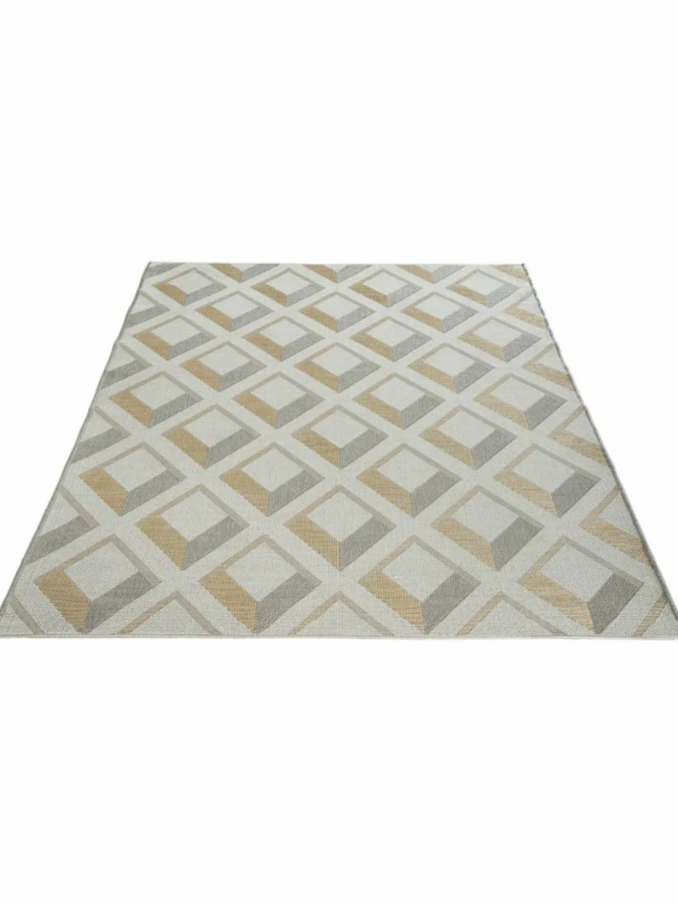 Dieser Outdoor-Teppich ist ein wahrer Eye-Catcher! Das strapazierfähige Flachgewebe hat einen raffinierten 3D-Effekt. Dank seiner schlichten Farbkombinationen und dem geometrischen Muster fügt er sich mühelos in eine moderne und elegante Einrichtung ein. Aus 100 % Polypropylen hergestellt, ist er besonders robust und leicht zu reinigen. Mit seinem einzigartigen Design und seiner hochwertigen Verarbeitung ist Effect die perfekte Wahl, um Ihrem Zuhause im Freien das gewisse Etwas zu verleihen.